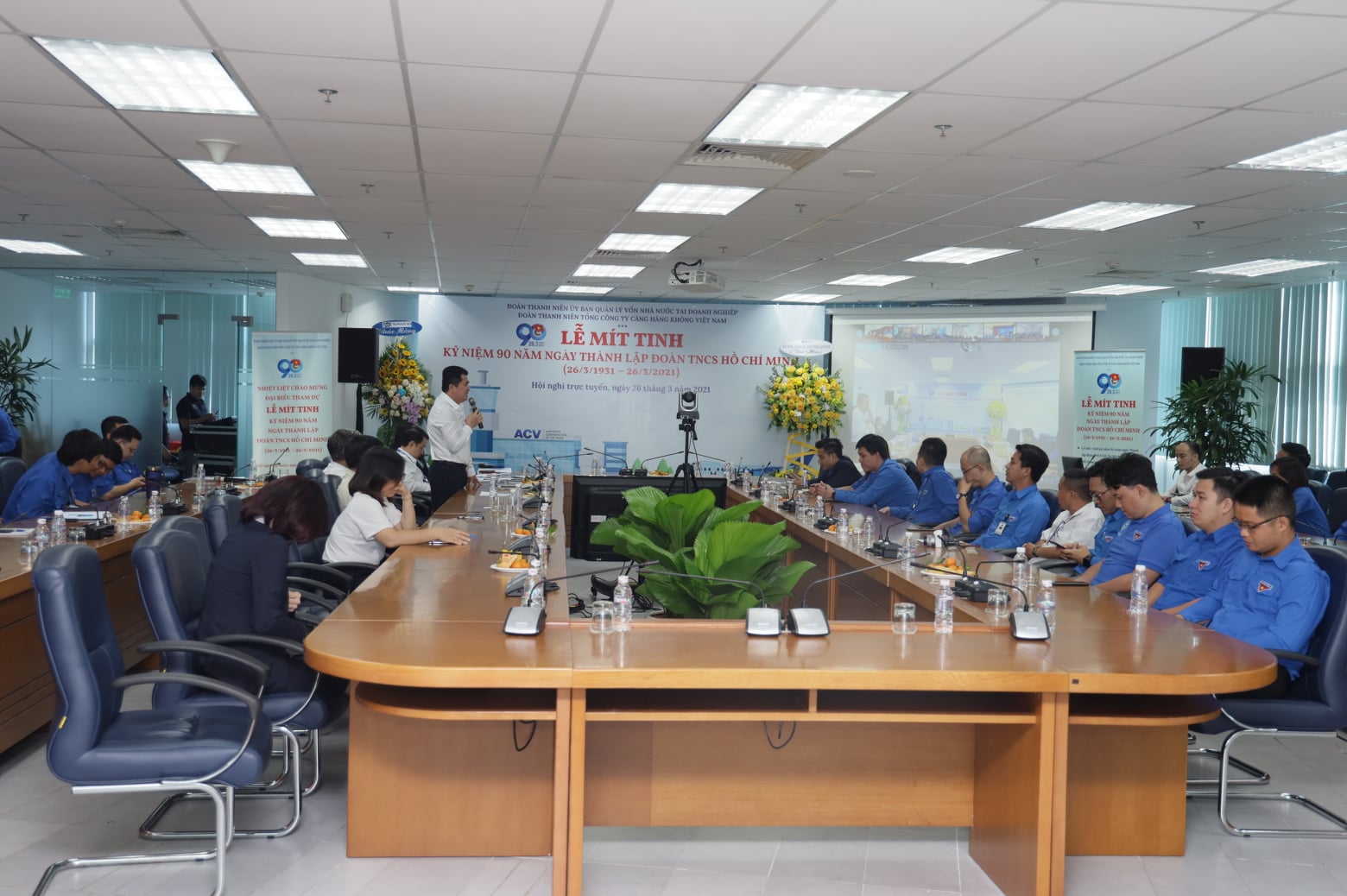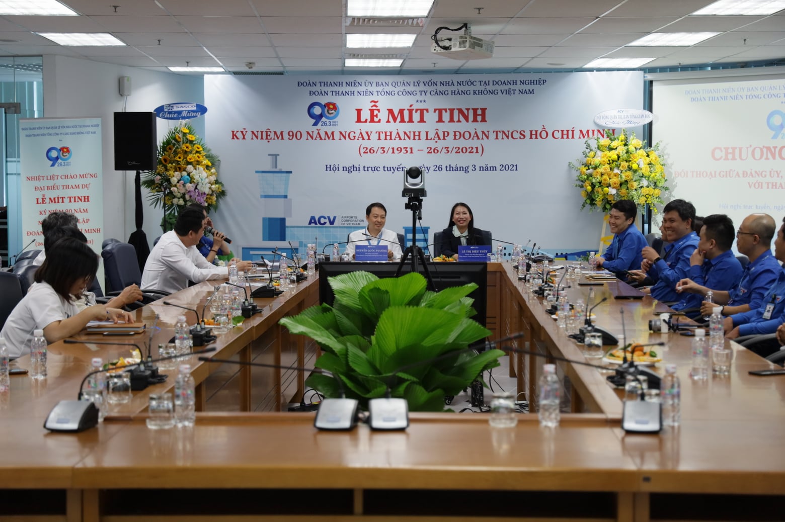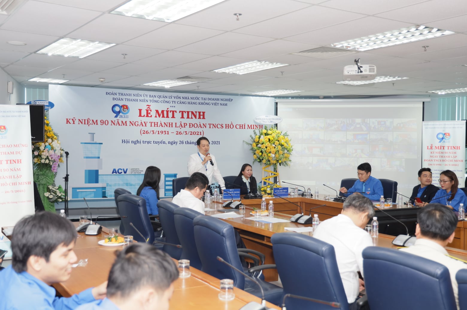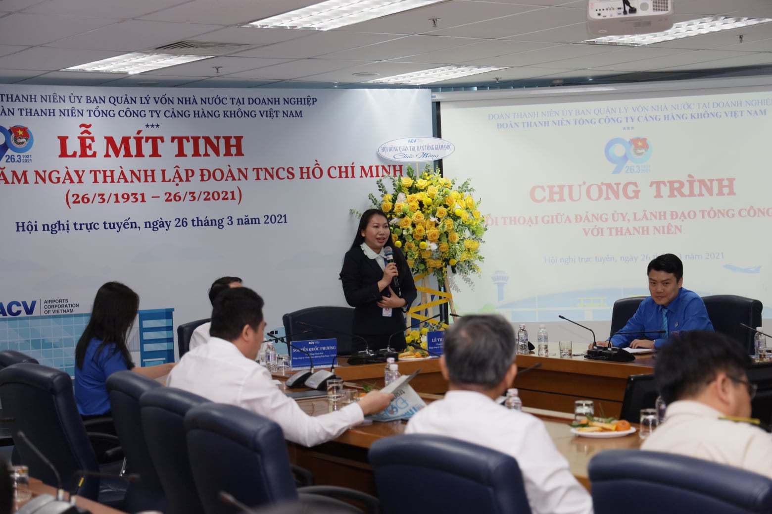 Được sự chấp thuận của Đảng ủy, Ban Lãnh đạo Tổng công ty Cảng hàng không Việt Nam (ACV), sáng ngày 26/3/2021, Đoàn Thanh niên ACV đã long trọng tổ chức Lễ mít-tinh trực tuyến kỷ niệm 90 năm Ngày thành lập Đoàn TNCS Hồ Chí Minh (26/3/1931 – 26/3/2021) và tọa đàm đối thoại với Đảng ủy, Ban Lãnh đạo ACV với mục đích tiếp thu các định hướng,ý kiến chỉ đạo của Ban Thường vụ Đảng ủy về công tác Đoàn và phong trào thanh niên trong thời kỳ mới; nắm bắt, tiếp thu các thông tin, quy định, chính sách mới của ACV. Đây cũng là cơ hội để đoàn viên thanh niên bày tỏ nguyện vọng, ý kiến đóng góp xây dựng với Ban Thường vụ Đảng ủy, Ban Lãnh đạo ACV.
