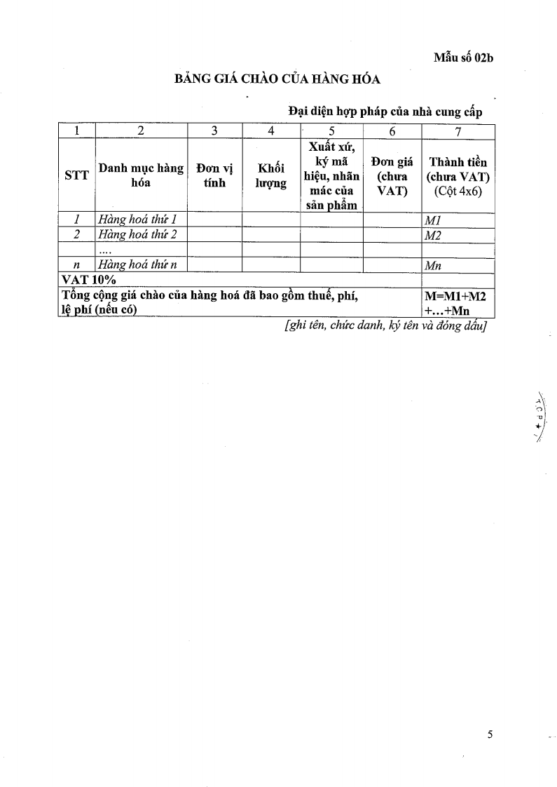 Thông báo mời chào giá