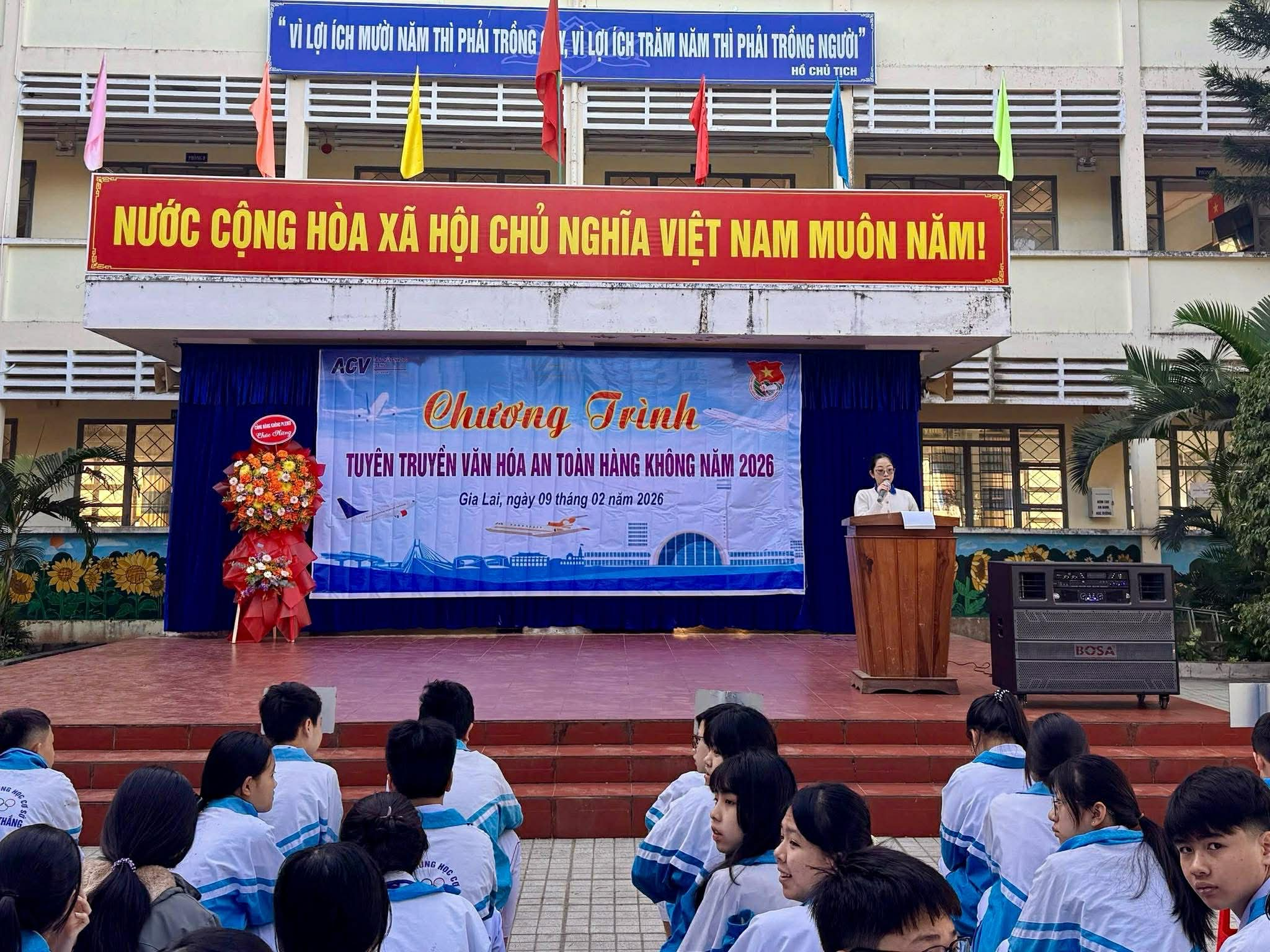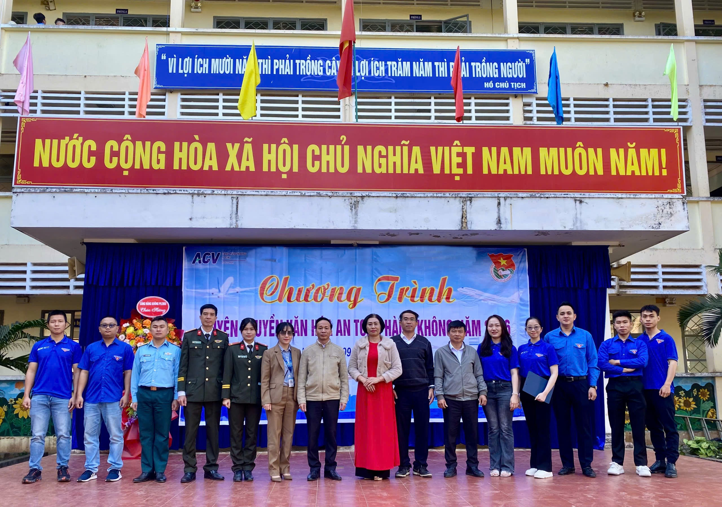 Tiếp nối hiệu quả từ các chương trình tuyên truyền đã tổ chức trong năm 2024, sáng ngày 09/02/2026, Đoàn Thanh niên Cảng hàng không Pleiku đã phối hợp cùng đại diện Cảng vụ Hàng không miền Trung tại Pleiku, Đài Kiểm soát không lưu Pleiku, Tiểu đoàn Bảo đảm kỹ thuật sân bay Pleiku, Đội An ninh hàng không – Phòng Quản lý Xuất nhập cảnh và các hãng hàng không đang khai thác tại Cảng như Vietnam Airlines và Vietjet Air tổ chức buổi tuyên truyền tập trung tại Trường THCS Tôn Đức Thắng, tỉnh Gia Lai. Chương trình thu hút khoảng 1.000 học sinh tham gia – nhóm đối tượng quan trọng trong việc hình thành ý thức chấp hành quy định và lan tỏa văn hóa an toàn hàng không trong cộng đồng.