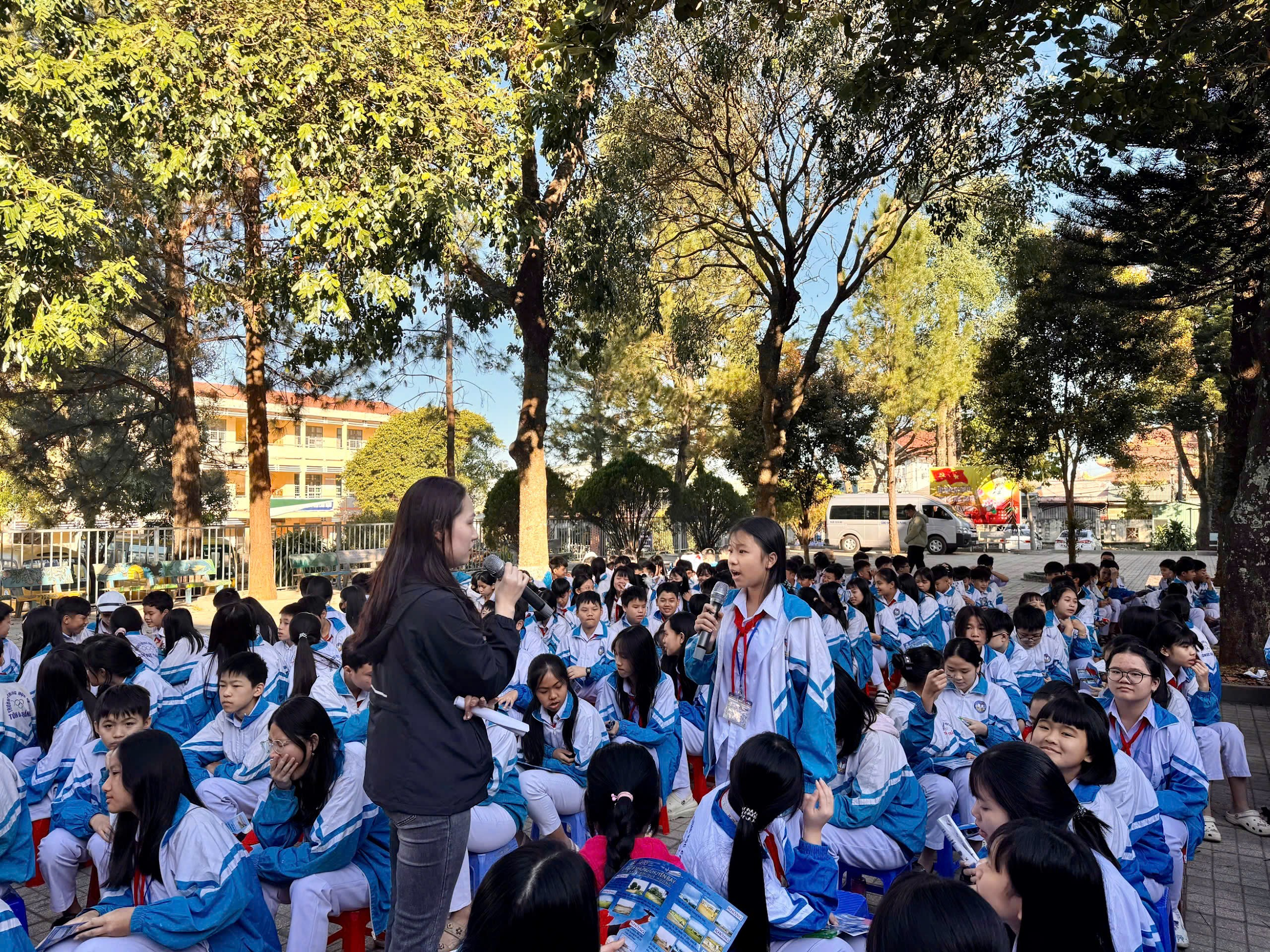 Học sinh Trường THCS Tôn Đức Thắng hào hứng tham gia chương trình tuyên truyền
