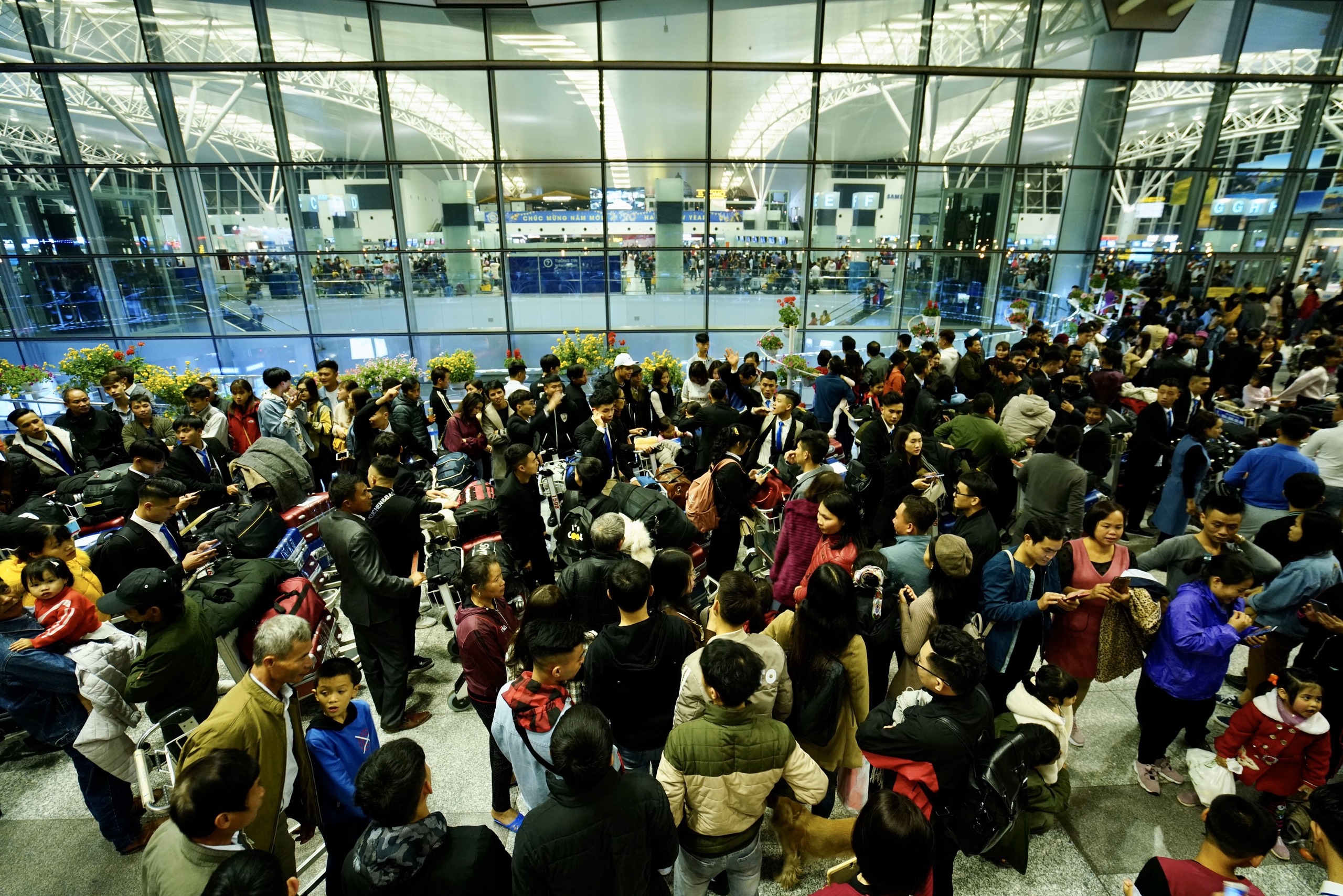 Khu vực tiền sảnh nhà ga T2 - Cảng HKQT Nội Bài cũng rất đông