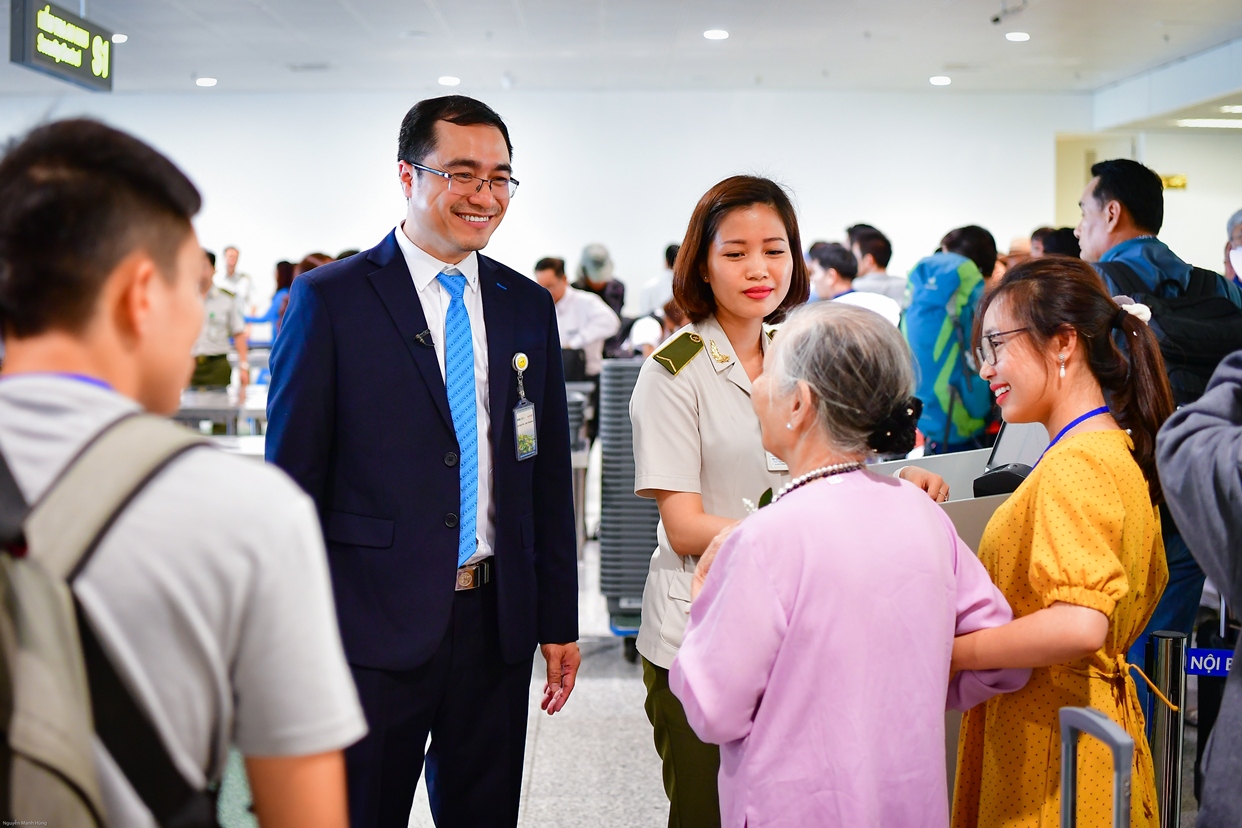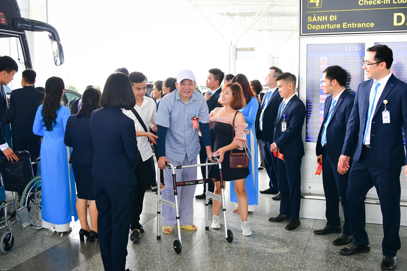 Toàn thể dây chuyền phục vụ bay được chuẩn bị: từ khâu đón khách, làm thủ tục check-in, kiểm tra an ninh, thủ tục xuất cảnh, soi chiếu, boarding tàu bay. Lực lượng CBNV Cảng HKQT Nội Bài, từ Trực ban trưởng, lực lượng An ninh hàng không, điều hành sân bay, nòng cốt là thanh niên đã được huy động, tham gia hỗ trợ tận tình từ khi các cụ xuống xe ô tô cho đến khi các cụ đặt chân lên chiếc tàu bay thế hệ mới Boeing 787.