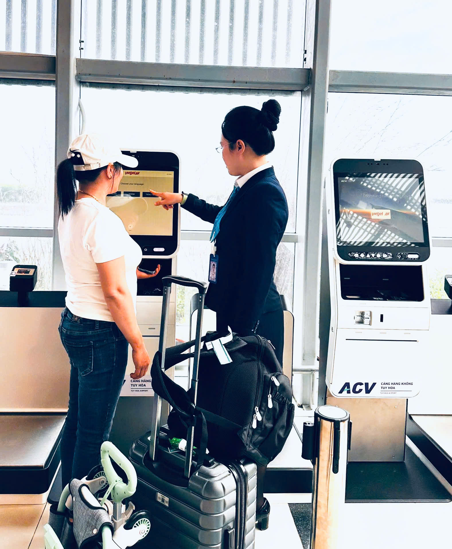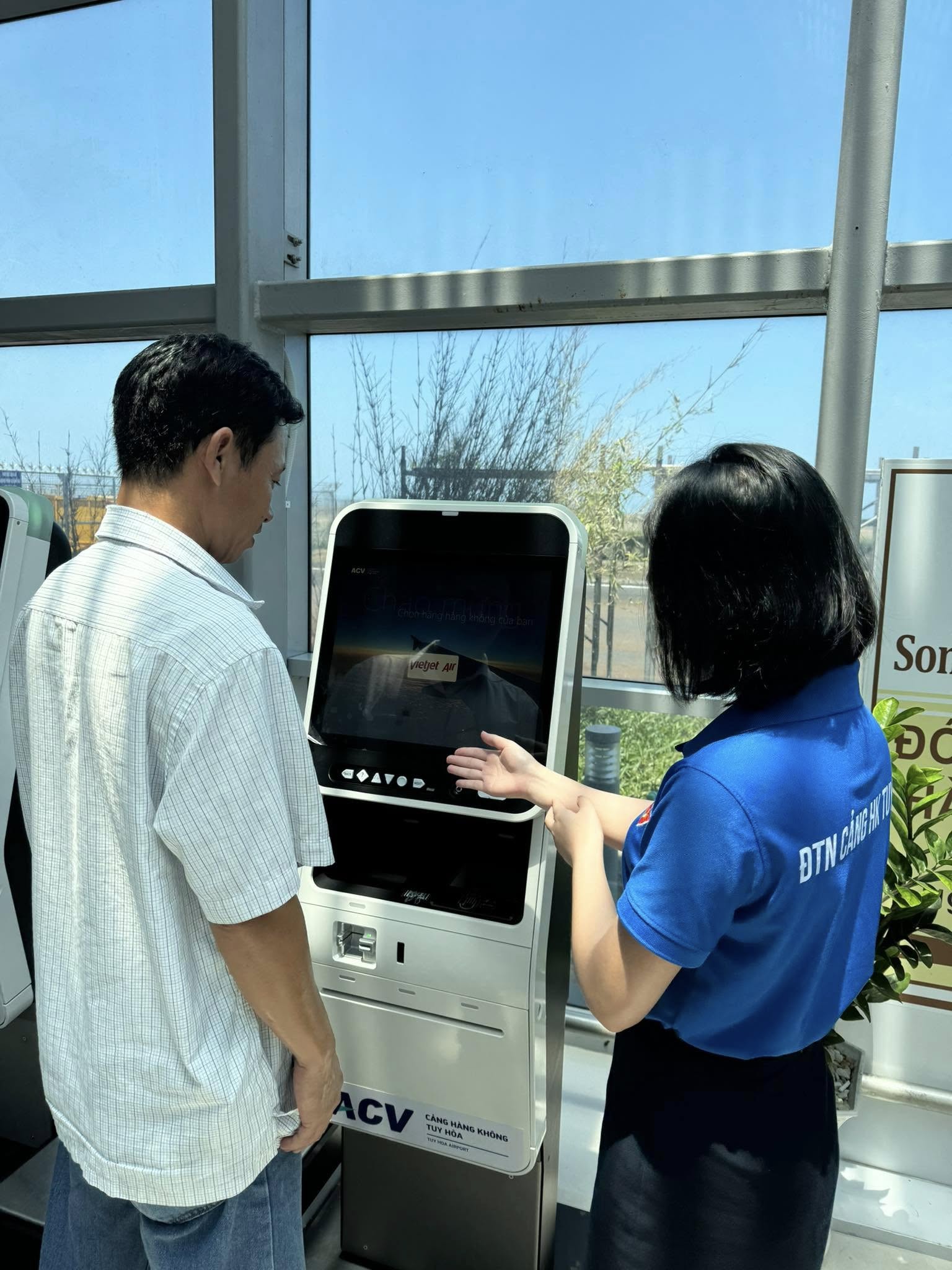 Đưa Kiosk Chek-in vào hoạt động, tuổi trẻ Đoàn thanh niên CHK Tuy Hòa tích cực, nhiệt tình hướng dẫn cho khách sử dụng các Kiosk Chek-in, hổ trợ khách cần trợ giúp trong quá trình di chuyển,…