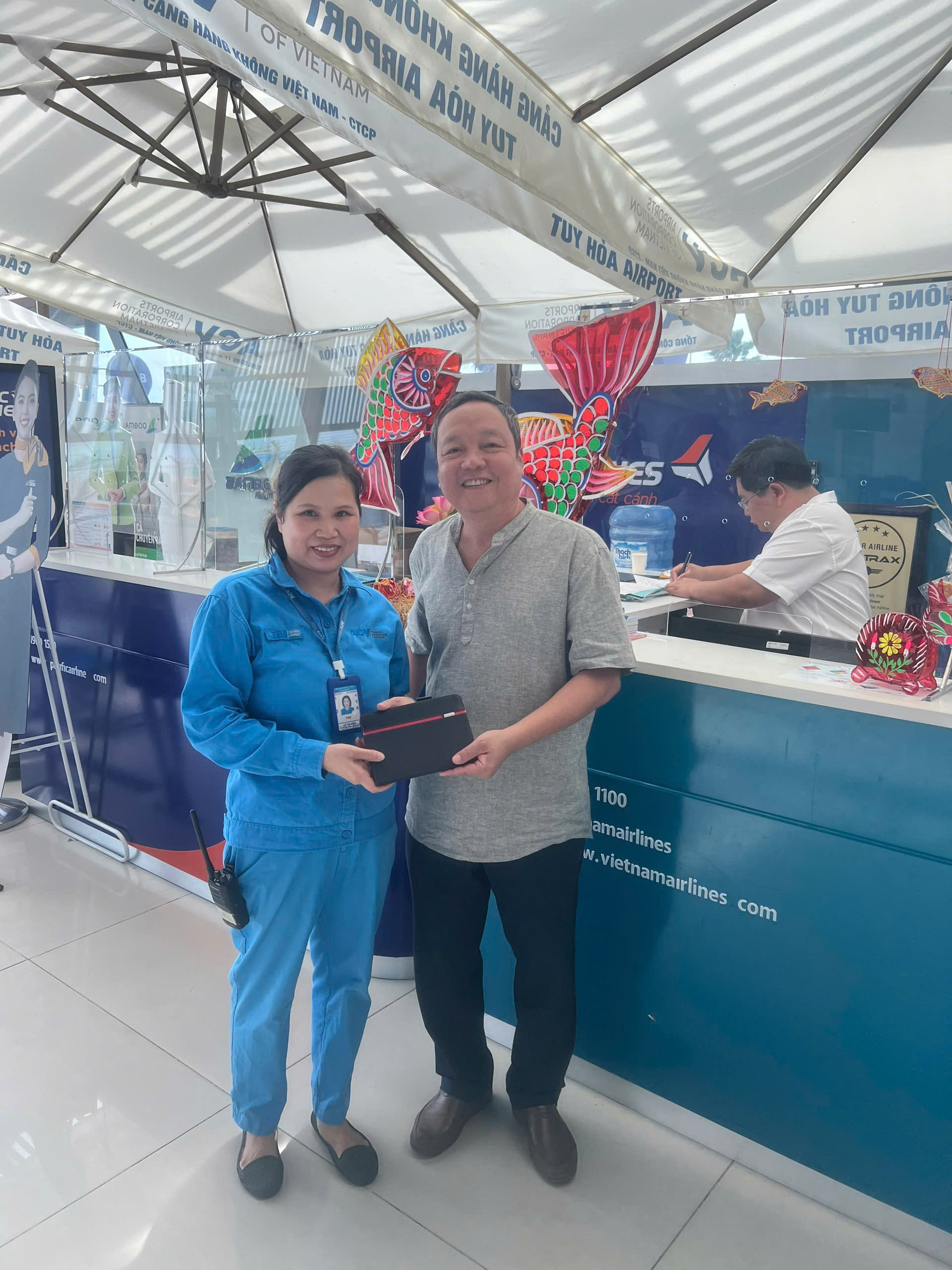 Vào lúc 08h30 , sau khi đáp chuyến bay VN1660 từ Sân bay quốc tế Tân Sơn Nhất đi Sân bay Tuy Hòa, hành khách Đặng Quốc Anh , số ghế 10D đã bỏ quên 01 Ipad Mini, sau đó được nhân viên vệ tàu bay tìm thấy và nhanh chóng liên hệ với các bên liên quan để thực hiện tìm và trao trả tài sản lại cho hành khác bỏ quên.