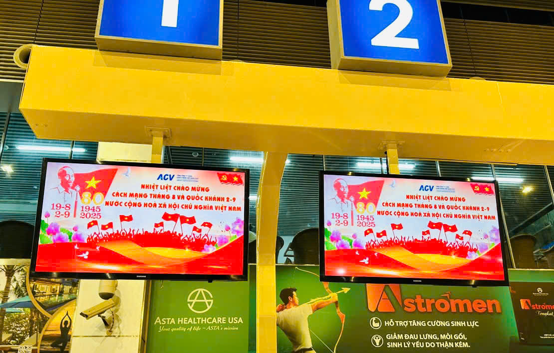 Ngay từ đầu tháng 8, khắp nhà ga hành khách được trang hoàng cờ hoa rực rỡ; các bảng điện, màn hình LED đồng loạt hiển thị hình ảnh Bác Hồ cùng thông điệp kỷ niệm 80 năm, lan tỏa niềm tri ân những trang sử hào hùng, đồng thời chào mừng sự kiện trọng đại của đất nước.