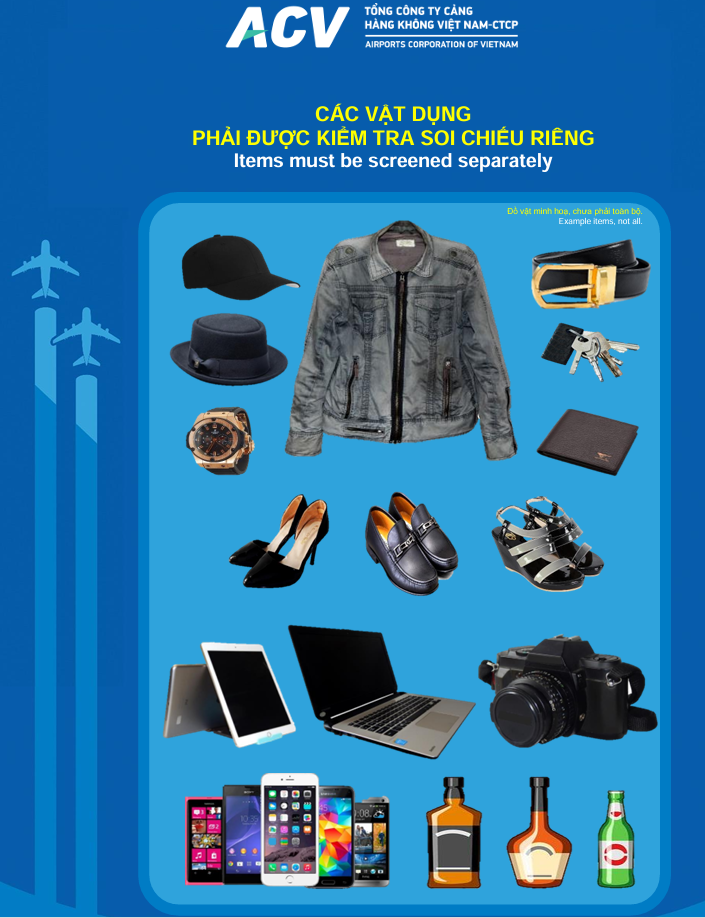 3. Các vật dụng phải được kiểm tra soi chiếu riêng