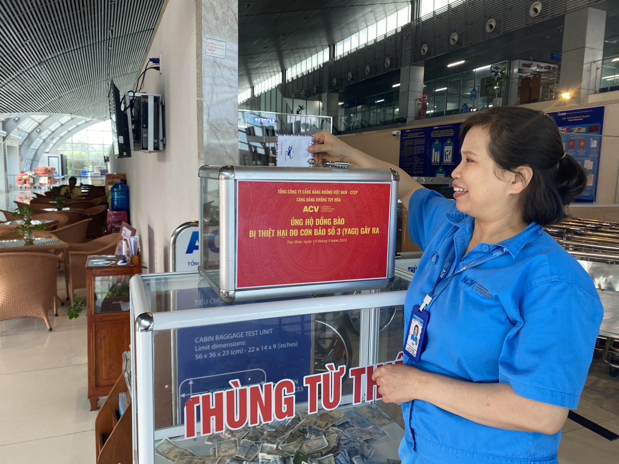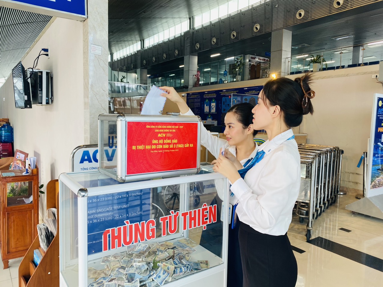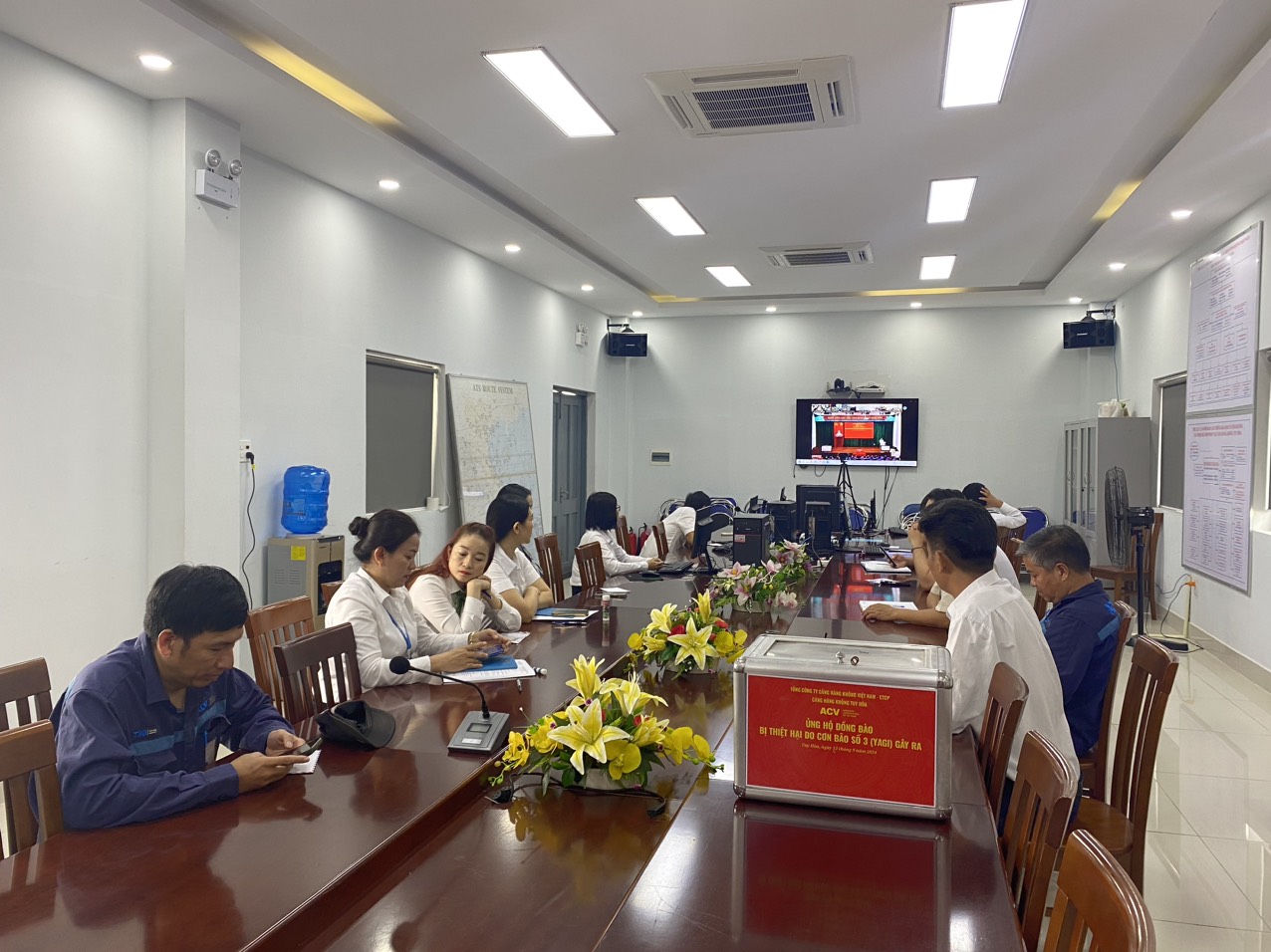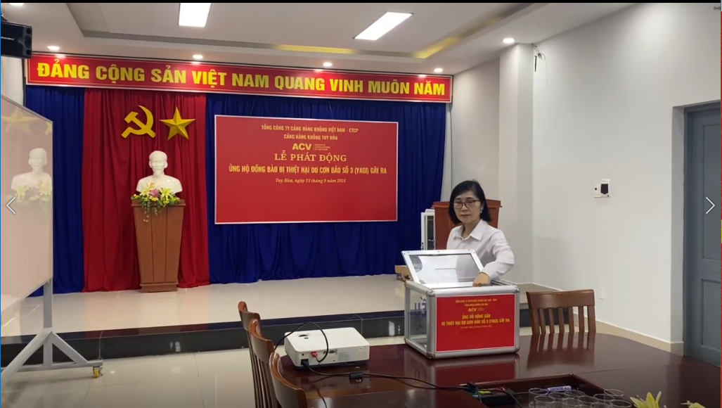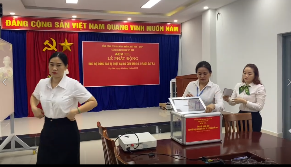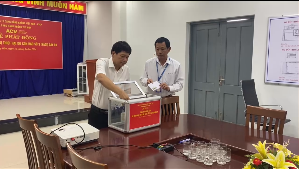 Với tinh thần chung tay cùng cả nước, sáng ngày 13/9/2024, Cảng hàng không Tuy Hòa kết nối với 22 điểm cầu các cụm cảng hàng không-trực thuộc Tổng công ty cảng hàng không việt Nam-CTCP, đã tổ chức vận động quyên góp toàn thể Cán bộ công nhân viên, người lao động thể hiện tinh thần “lá lành đùm lá rách”