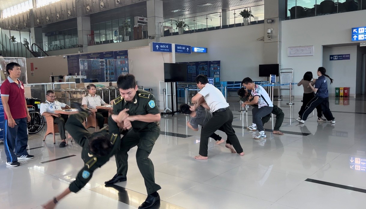 Thực hiện Quyết định số 1884/QĐ-TCTCHKVN ngày 10/5/2024 về Quy định huấn luyện nghiệp vụ tại chỗ cho lực lượng kiểm soát an ninh hàng không của Tổng công ty Cảng hàng không Việt Nam – CTCP (ACV),Từ ngày 20/05 - 20/06/2024, Cảng hàng không Tuy Hòa phối hợp với Công ty TNHH Dịch vụ Bảo vệ Huỳnh Quốc Việt tổ chức Khóa huấn luyện “Kỹ năng tự vệ” năm 2024 cho 37 học viên thuộc Lực lượng kiểm soát An ninh tại Cảng hàng không.
