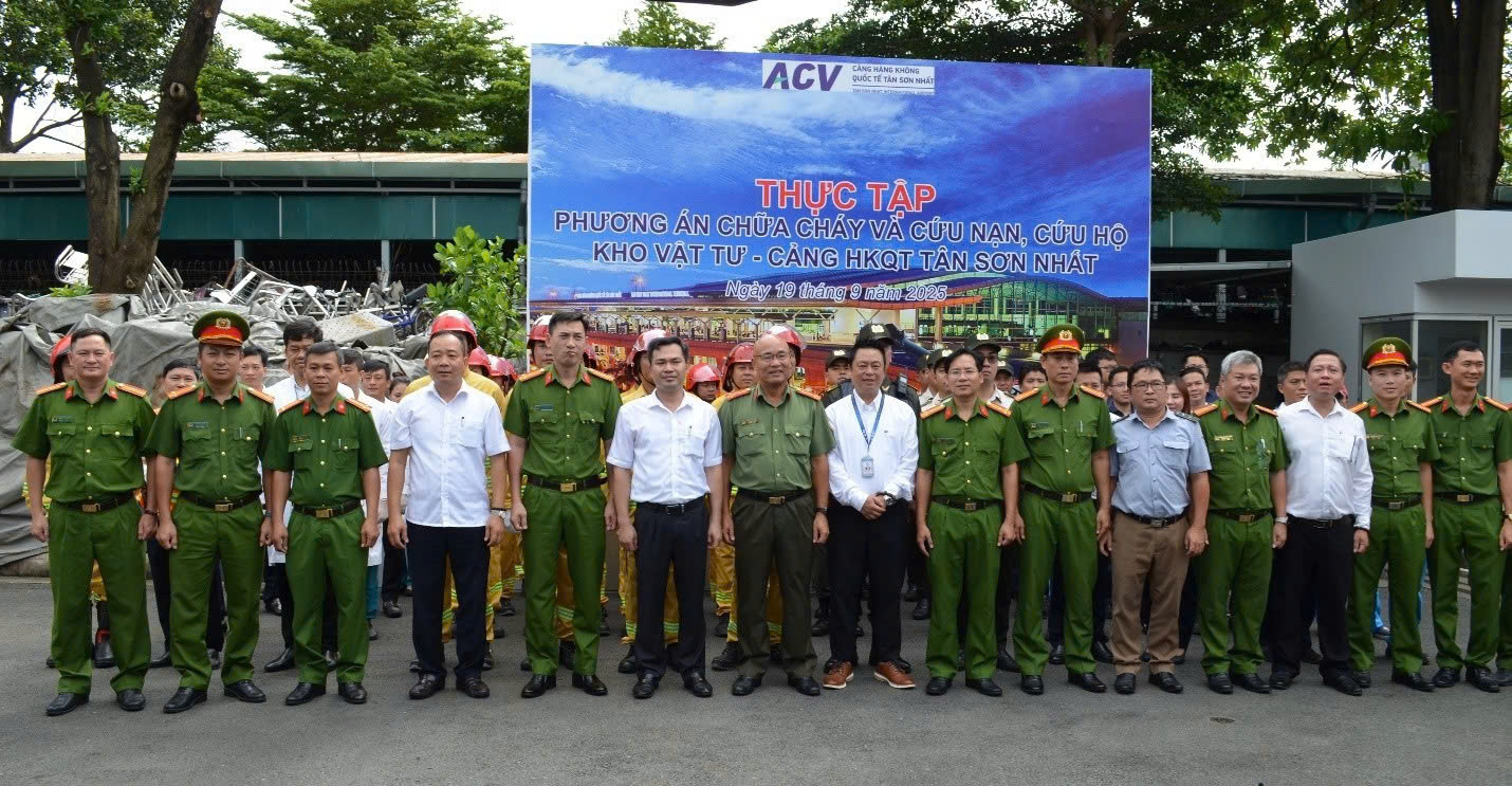 Sáng ngày 19/9/2025, Cảng HKQT Tân Sơn Nhất đã tổ chức chương trình “Diễn tập cấp cơ sở về PCCC&CNCH năm 2025”. Tham dự chương trình có Ông Nguyễn Toàn Đắc - Phó Giám đốc Cảng, Trưởng Ban Chỉ đạo diễn tập năm 2025; đồng chí Thượng Tá Bùi Trung Hiếu - Phó Trưởng phòng Cảnh sát PCCC&CNCH Công an Tp. Hồ Chí Minh; đại diện Cảng vụ hàng không Miền Nam, các cơ quan chức năng cùng nhiều đơn vị hàng không và phi hàng không đang hoạt động tại Cảng HKQT Tân Sơn Nhất.