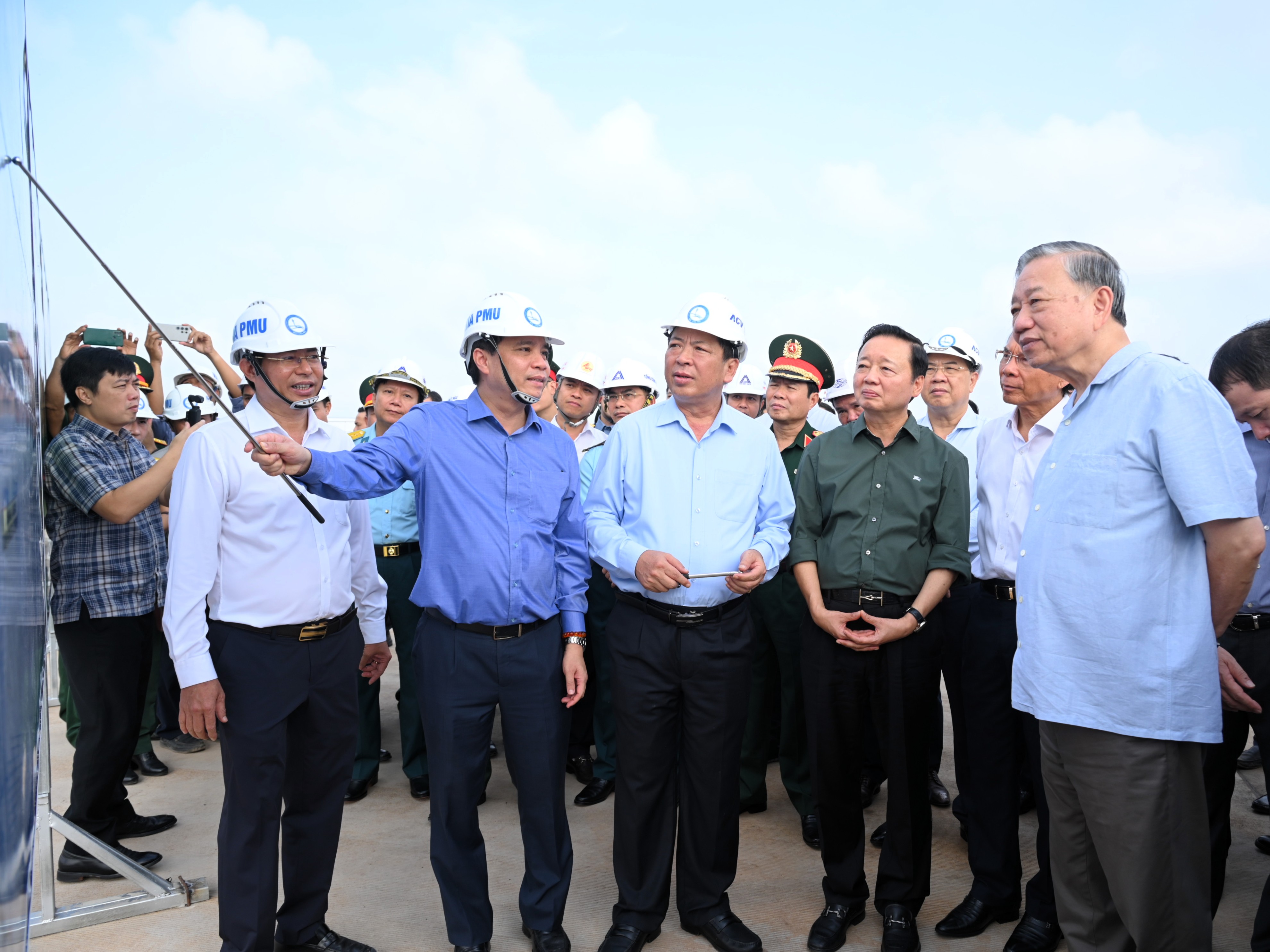 Sau khi nghe báo cáo của Bộ Xây dựng, ý kiến thảo luận của các đại biểu, phát biểu kết luận buổi làm việc, Tổng Bí thư đánh giá cao tinh thần nỗ lực, trách nhiệm, sáng tạo, khẩn trương của toàn hệ thống chính trị, các chủ đầu tư, tư vấn, giám sát và hàng vạn cán bộ, kỹ sư, công nhân trên công trường dự án xây dựng Cảng HKQT Long Thành. Đến nay, tiến độ chung của Dự án giai đoạn 1 đạt kết quả rất tích cực. Dự án đã bước đầu chứng minh được hiệu quả tài chính và năng lực tự chủ của doanh nghiệp Việt Nam; các công nghệ quản lý tiên tiến được làm chủ như: Trung tâm điều hành sân bay thông minh (Smart APOC), Hệ thống quản trị tổng thể AMS, Hệ thống xử lý hành lý ICS tốc độ cao, OneID, VNeID…, sẽ đưa Long Thành hướng tới chuẩn “Sân bay xanh - thông minh - 5 sao quốc tế”.