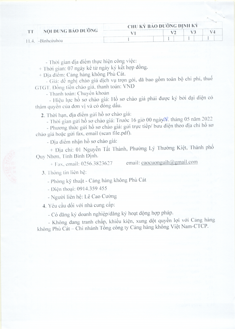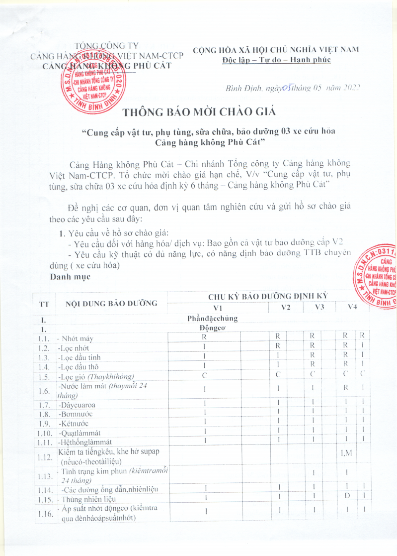 TBMCG: "Cung cấp vật tư, phụ tùng, sửa chữa, bảo dưỡng 03 xe cứu hỏa - Cảng hàng không Phù Cát".