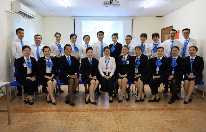 Nhằm nâng cao chất lượng dịch vụ khai thác mặt đất, Tổng công ty Cảng hàng không Việt Nam (ACV) đã tổ chức 02 khóa đào tạo về Tiêu chuẩn hình ảnh và kỹ năng chăm sóc khách hàng chuyên nghiệp dành cho cán bộ phục vụ hành khách đến từ các cảng hàng không chi nhánh trực thuộc ACV từ ngày 29/03 - 31/03/2023 và từ ngày 05/04 – 07/04/2023.