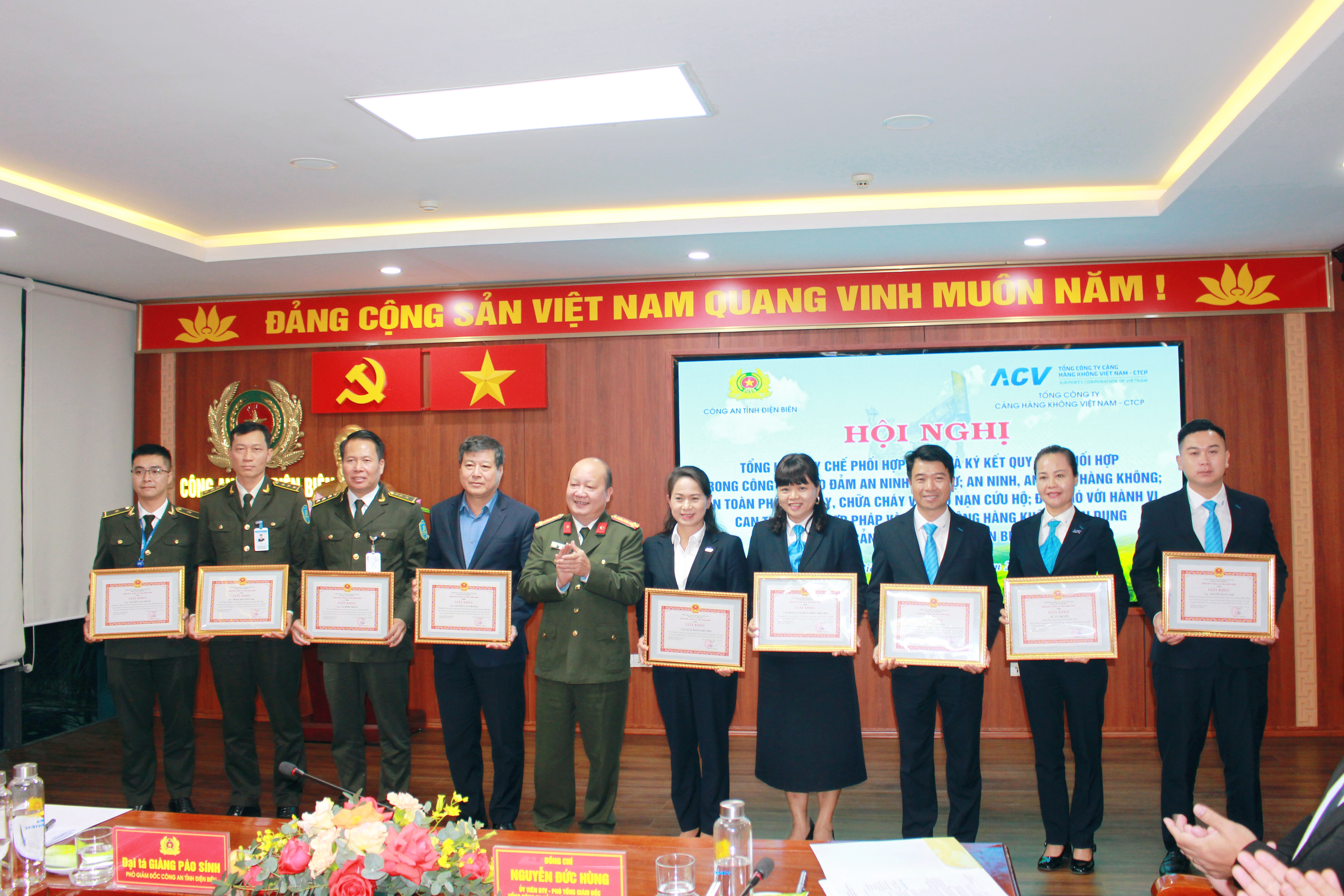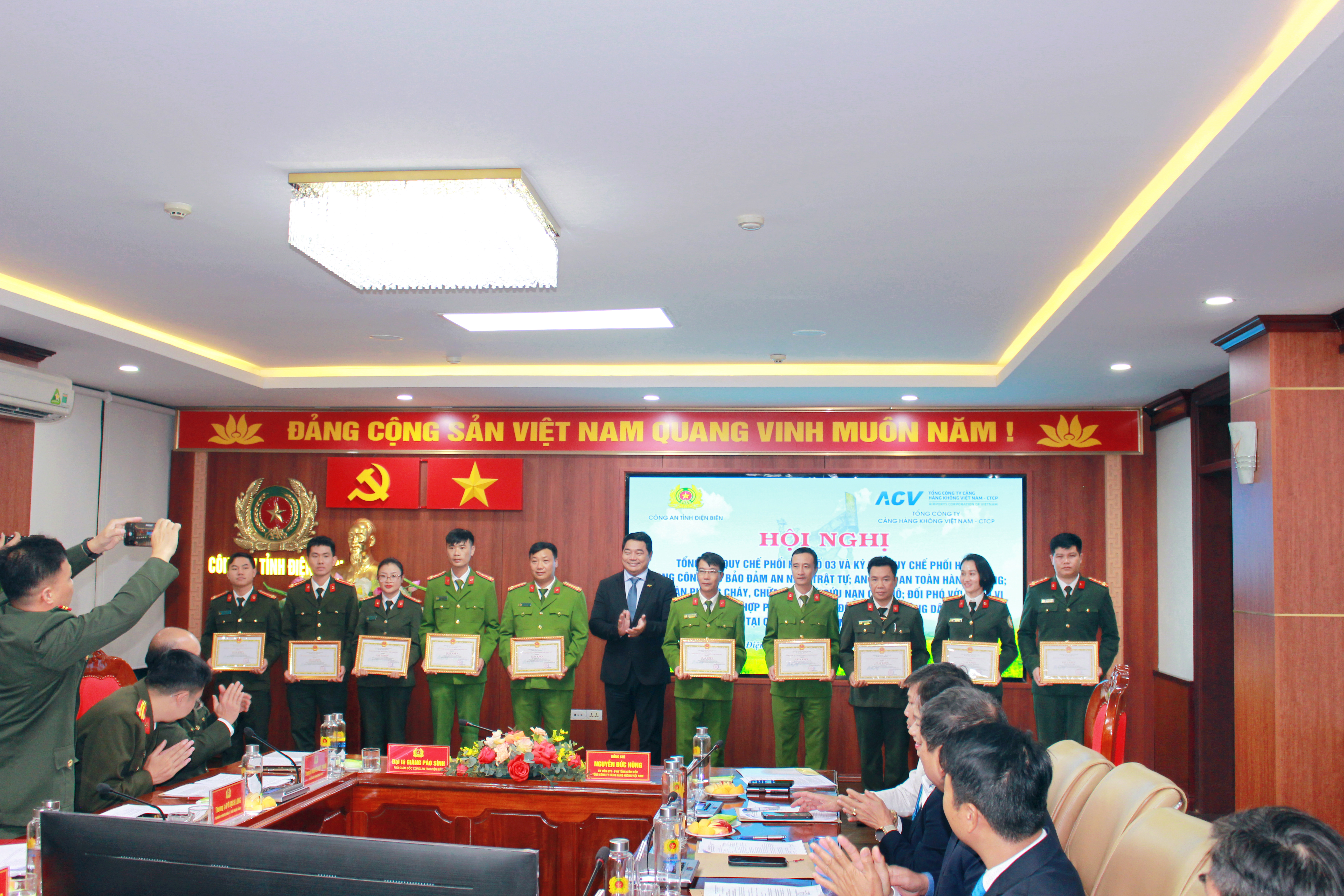 Nhân dịp này, Lãnh đạo ACV và Công an tỉnh Điện Biên đã trao Giấy khen cho nhiều tập thể và cá nhân của hai ngành vì đã có thành tích hoàn thành xuất sắc nhiệm vụ trong công tác phối hợp, qua đó khích lệ, động viên tinh thần cán bộ, nhân viên tiếp tục phát huy thành tích trong thời gian tới.