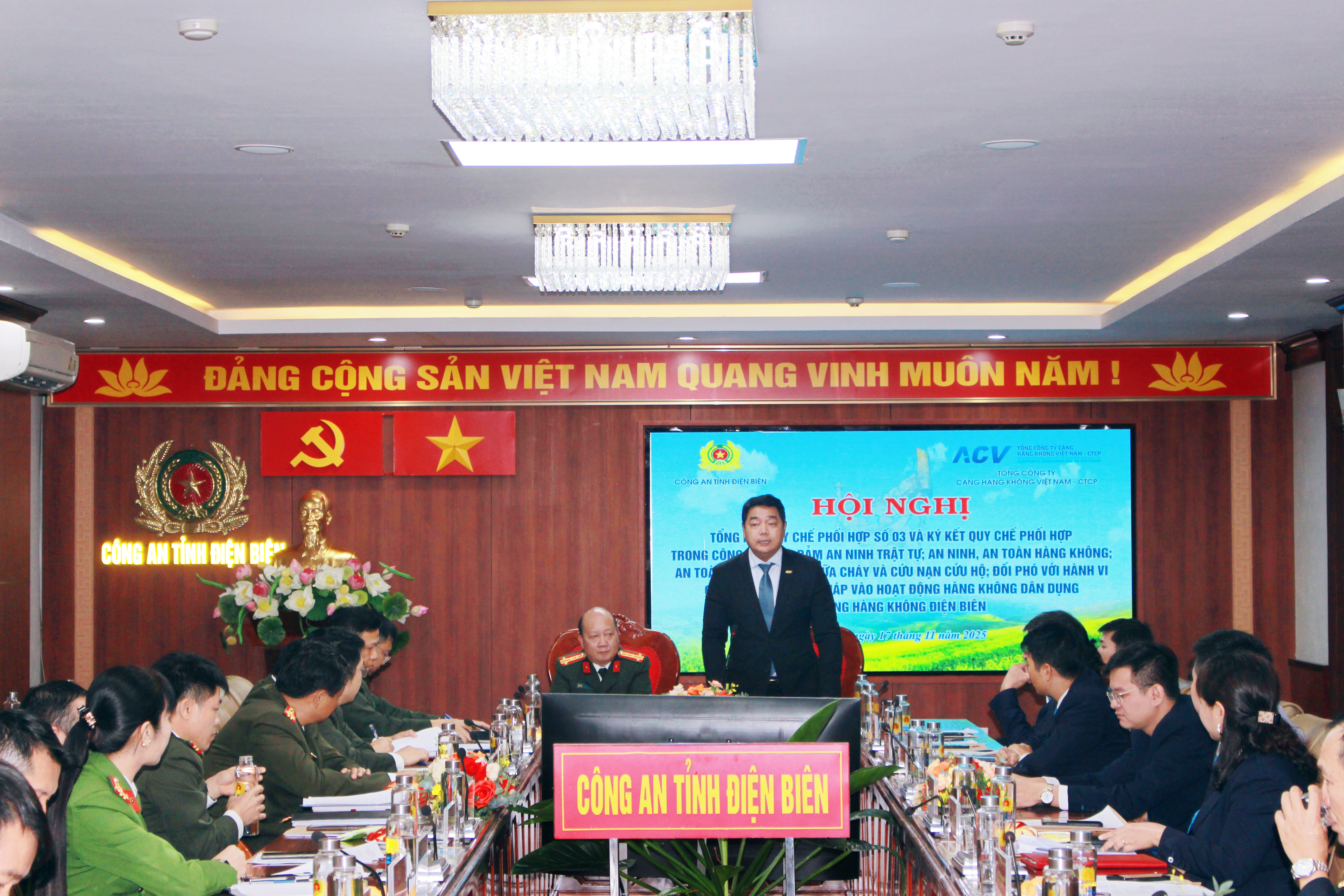 Ngày 17/11/2025, Tổng công ty Cảng hàng không Việt Nam – CTCP (ACV) và Công an tỉnh Điện Biên đã tổ chức Hội nghị tổng kết công tác phối hợp theo Quy chế số 03 và ký kết Quy chế phối hợp mới. Quy chế này nhằm tăng cường toàn diện công tác bảo đảm an ninh trật tự, an toàn hàng không, phòng cháy chữa cháy (PCCC) và cứu nạn cứu hộ (CNCH) cũng như chủ động đối phó với các hành vi can thiệp bất hợp pháp vào hoạt động hàng không dân dụng tại Cảng hàng không Điện Biên.
