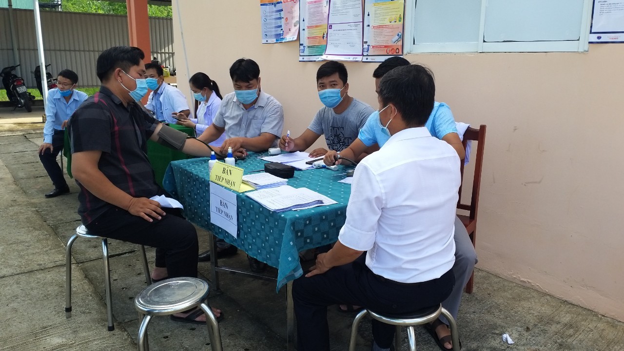 Nhằm bảo đảm an toàn khi tiêm vắc xin, Cảng HKQT Phú Quốc phối hợp với Trung tâm Y tế thành phố Phú Quốc tổ chức tư vấn, thực hiện khám sàng lọc để lựa chọn người có đủ điều kiện tham gia tiêm vacxin phòng Covid-19, theo dõi phản ứng sau tiêm với phương tiện sơ cứu cần thiết.