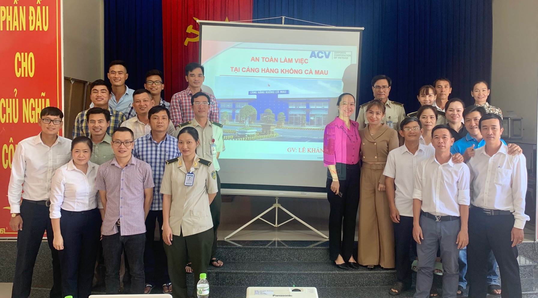 Hưởng ứng Tháng hành động về an toàn vệ sinh lao động (ATVSLĐ) năm 2021 (từ ngày 1/5 – 31/5/2021) với chủ đề “Tăng cường đánh giá, kiểm soát các nguy cơ rủi ro về an toàn, vệ sinh lao động và sự tham gia của an toàn, vệ sinh viên”, Cảng hàng không Cà Mau đã phối hợp với Công ty TNHH dịch vụ và đào tạo An Bình mở lớp huấn luyện ATVSLĐ và an toàn điện năm 2021 cho toàn thể cán bộ nhân viên.