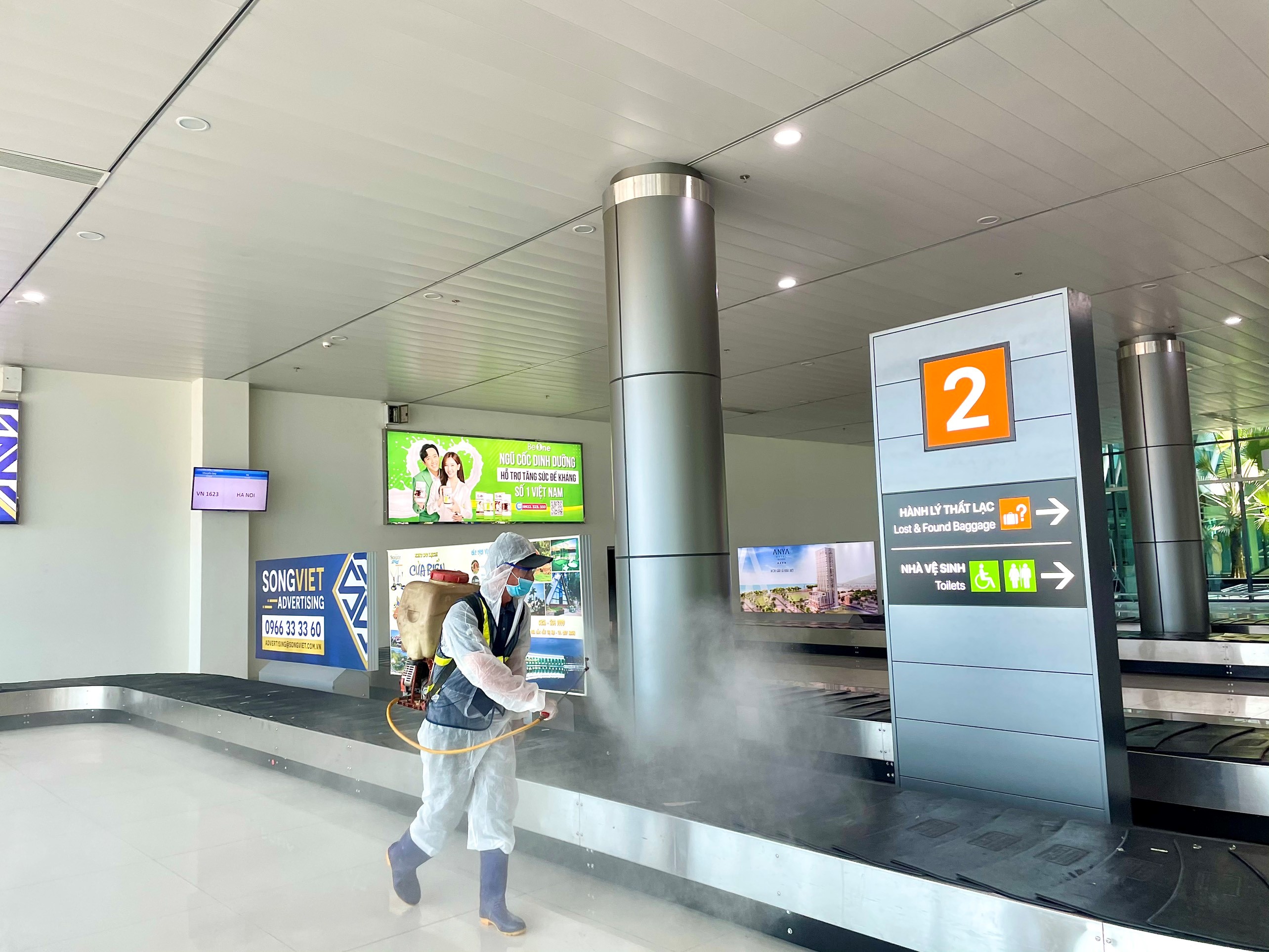Phun khử trùng khu vực ga đến nhà ga hành khách T1 - Cảng hàng không Phù Cát