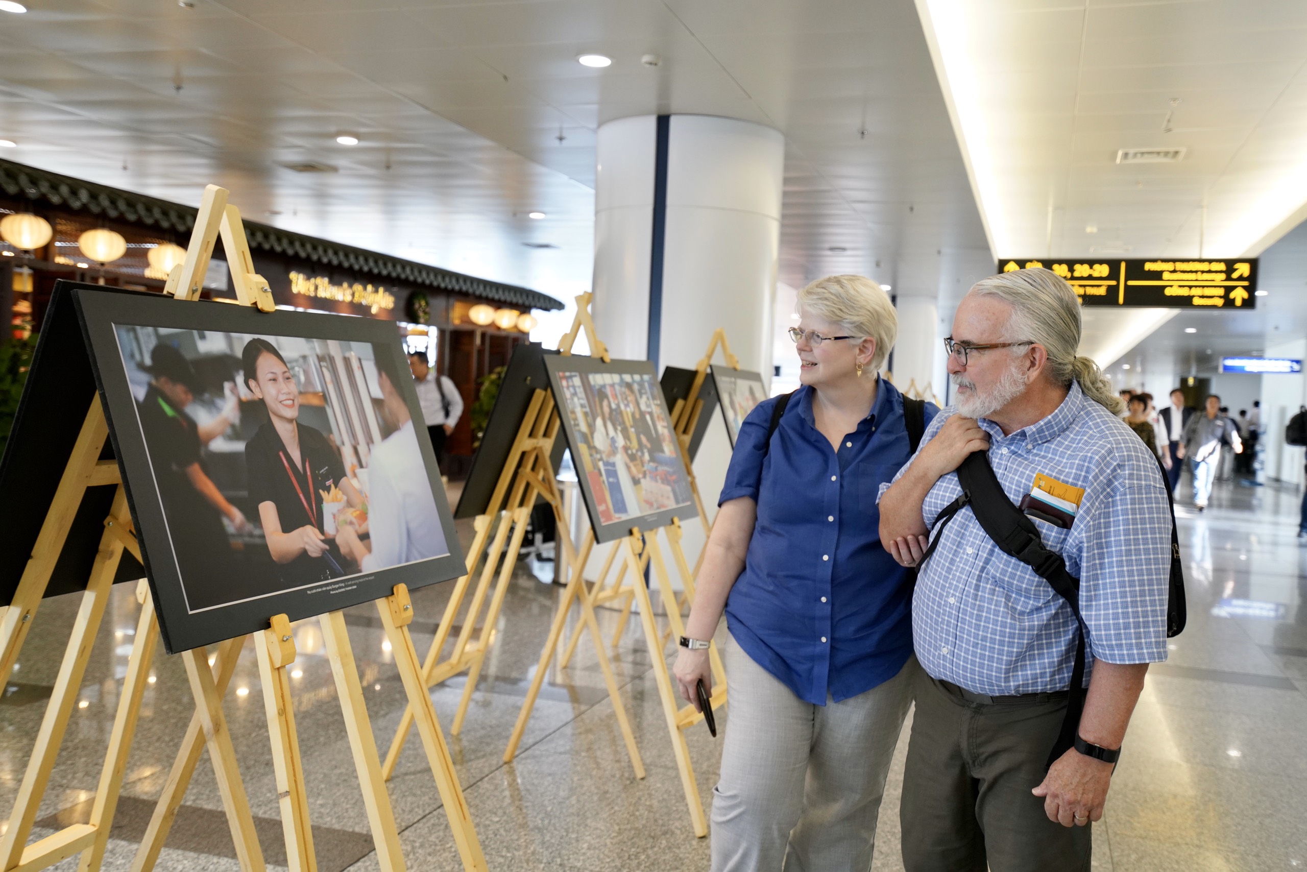 Hành khách thăm quan triển lãm cuộc thi ảnh “Nụ nười Nội Bài 2019”