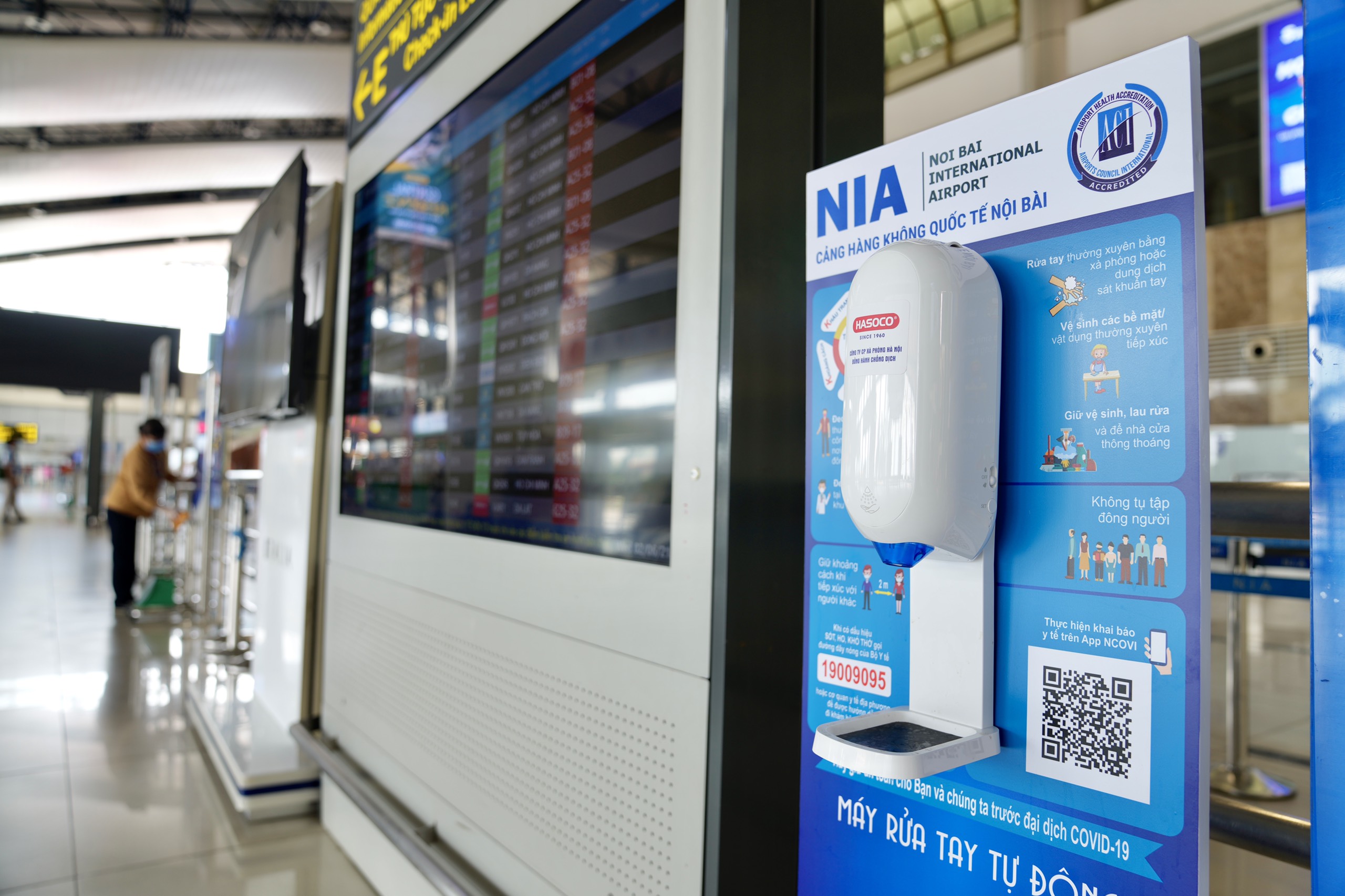Lắp đặt máy rửa tay sát khuẩn tự động – Cảng HKQT Nội Bài củng cố vững chắc công tác phòng chống dịch phòng chống Covid 19.