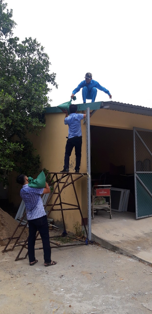 Cảng HKQT Phú Bài dùng bao cát gia cố mái tôn