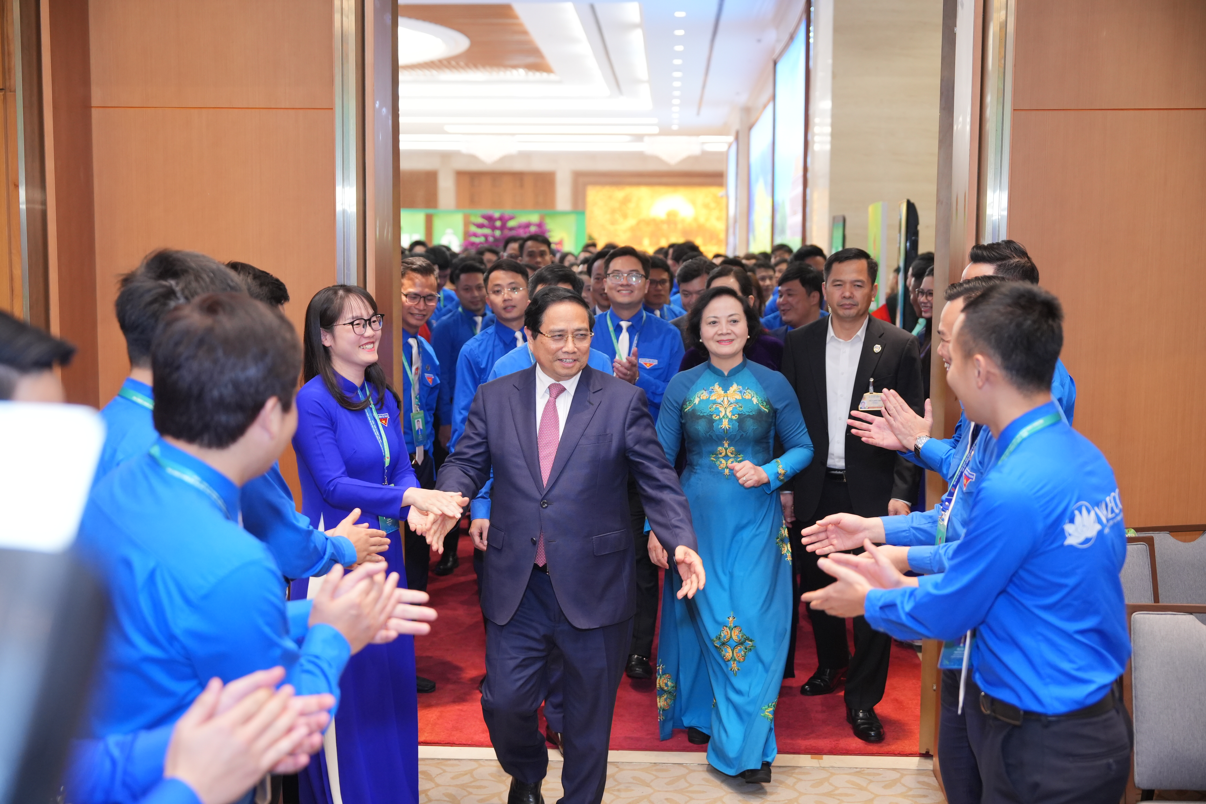 Trong không khí trang trọng và phấn khởi, Đại hội đã vinh dự được đón tiếp đồng chí Phạm Minh Chính - Ủy viên Bộ Chính trị, Bí thư Đảng ủy Chính phủ, Thủ tướng Chính phủ; đồng chí Phạm Thị Thanh Trà - Ủy viên BCH Trung ương Đảng, Phó Thủ tướng Chính phủ; cùng các đồng chí lãnh đạo Đảng ủy Chính phủ và Ban Bí thư Trung ương Đoàn đến dự và chỉ đạo Đại hội. Sự hiện diện của Thủ tướng là minh chứng rõ nét cho sự quan tâm sâu sắc, kỳ vọng to lớn của Đảng và Chính phủ đối với thế hệ trẻ.