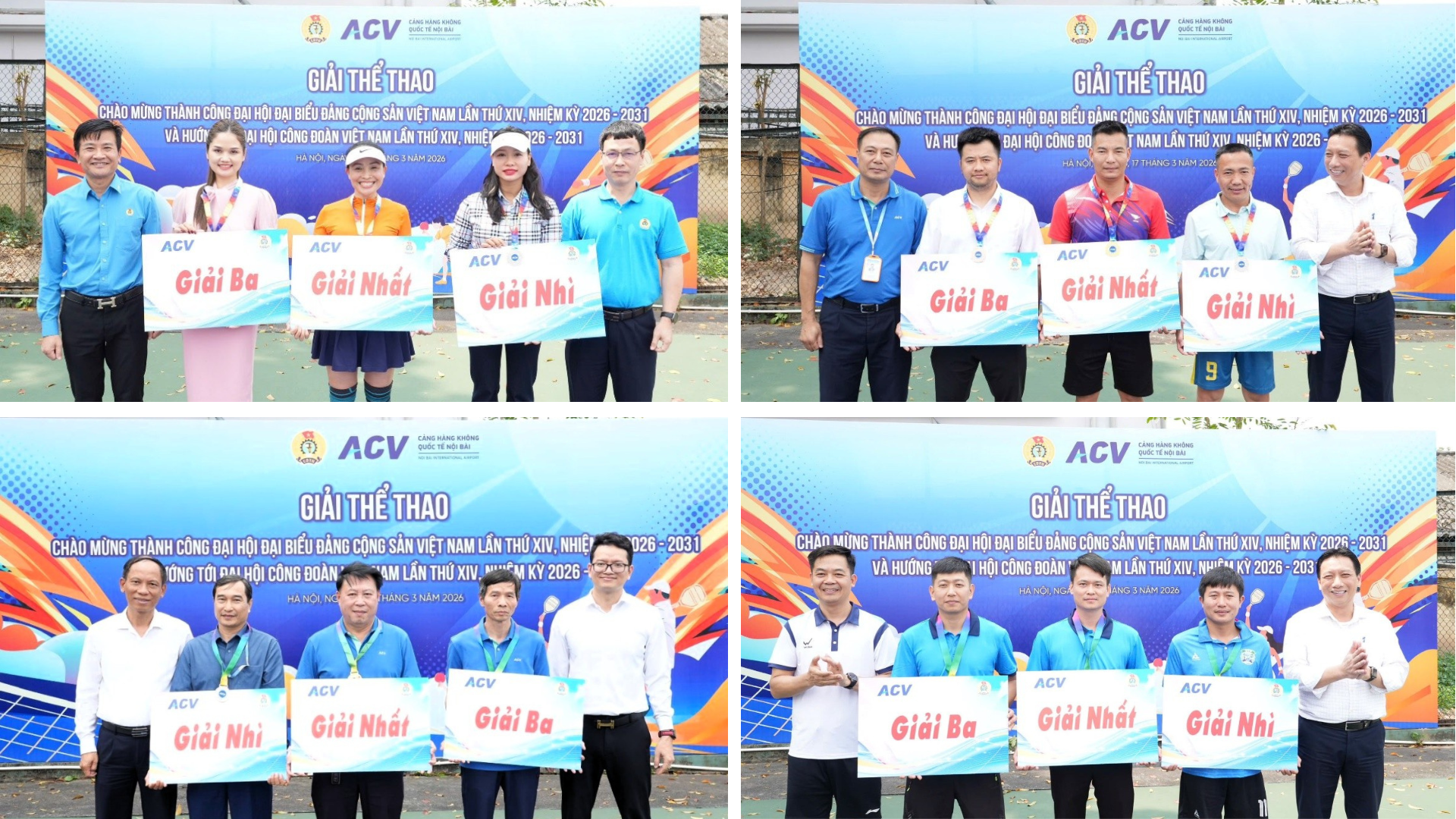 Trong không khí chào mừng thành công Đại hội Đại biểu Đảng Cộng sản Việt Nam lần thứ XIV, nhiệm kỳ 2026-2031 và hướng tới Đại hội Công đoàn Việt Nam lần thứ XIV, nhiệm kỳ 2026-2031, Cảng HKQT Nội Bài đã tổ chức Giải thể thao trong hai ngày 16-17/3/2026.