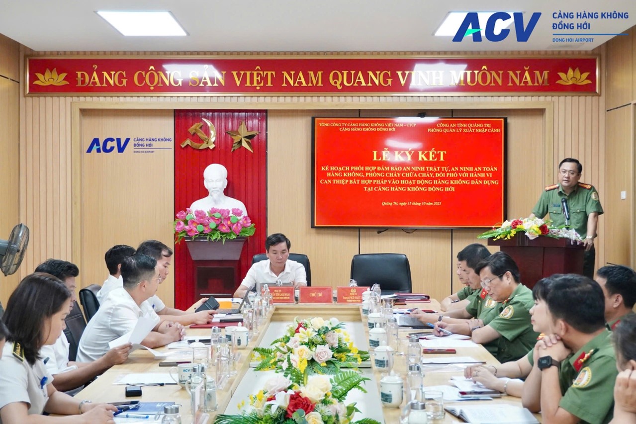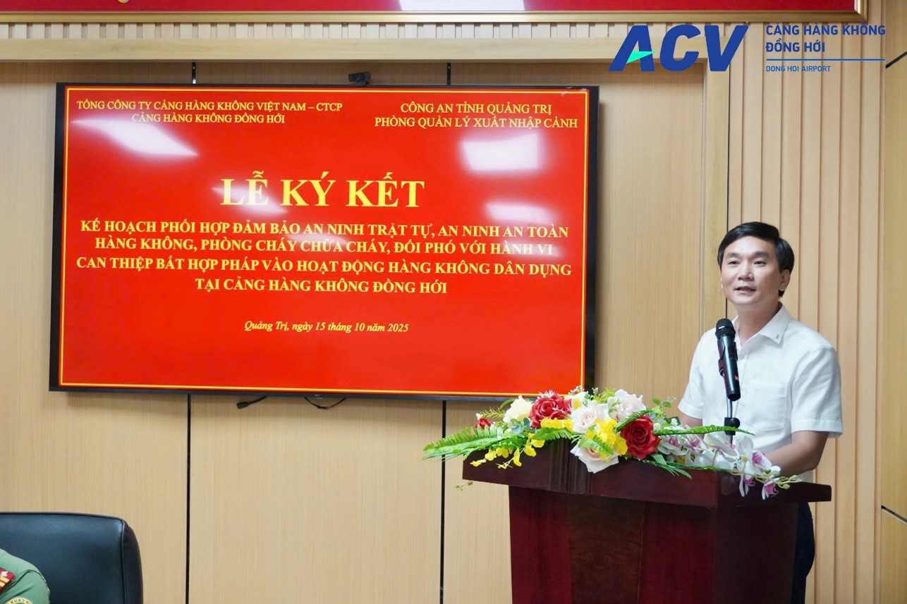 Phát biểu tại buổi lễ, Giám đốc Cảng hàng không Đồng Hới Nguyễn Thành Nam nhấn mạnh: trong bối cảnh hoạt động hàng không ngày càng sôi động, lượng khách quốc tế qua Cảng tăng cao, công tác bảo đảm an ninh, an toàn hàng không đóng vai trò hết sức quan trọng. Việc ký kết Kế hoạch phối hợp giữa hai đơn vị là bước cụ thể hóa chủ trương của ACV và PA08 về tăng cường mối quan hệ phối hợp giữa lực lượng công an và ngành hàng không dân dụng, hướng tới xây dựng môi trường làm việc “An toàn – Văn minh – Hiện đại – Hiệu quả”.