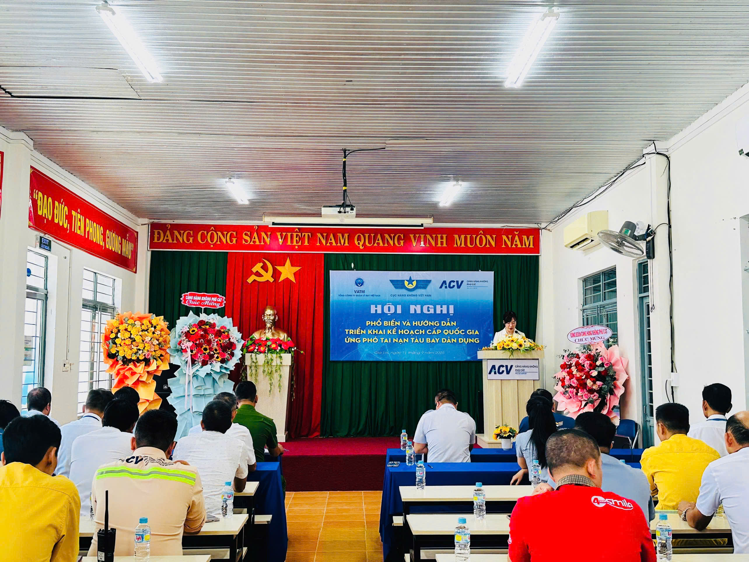 Ngày 11/09/2025, tại Cảng hàng không Phù Cát, Cục Hàng không Việt Nam phối hợp với Cảng hàng không Phù Cát tổ chức Hội nghị phổ biến, hướng dẫn các đơn vị trong ngành hàng không triển khai Kế hoạch cấp quốc gia ứng phó tai nạn tàu bay dân dụng.