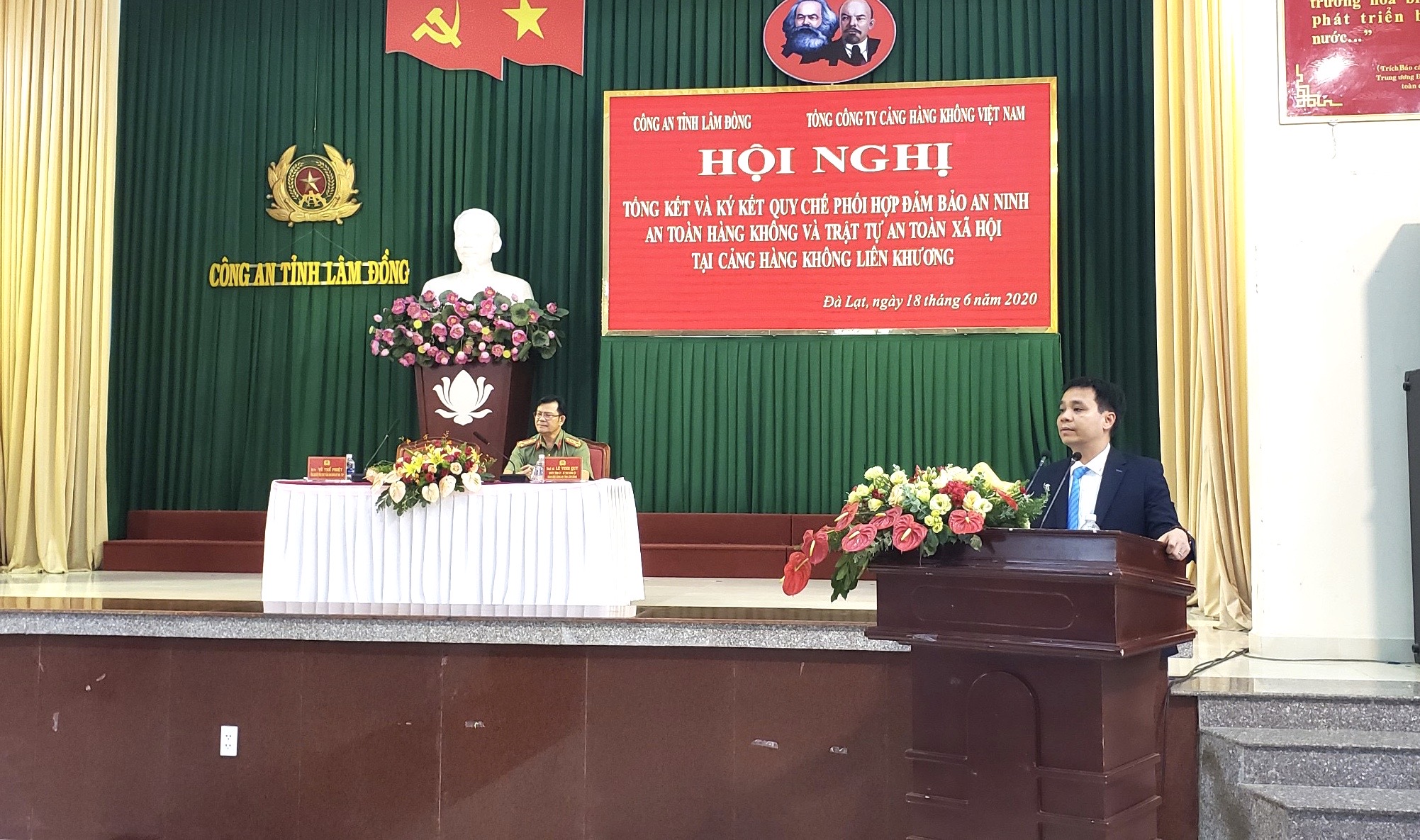Phát biểu tại hội nghị, Tổng Giám đốc Vũ Thế Phiệt thay mặt lãnh đạo Tổng công ty gửi lời cảm ơn sâu sắc đến các đơn vị Cng an, cơ quan quản lý nhà nước các cấp của tỉnh Lâm Đồng thời gian qua đã ủng hộ, phối hợp, hỗ trợ Tổng công ty trong hoạt động sản xuất kinh doanh, đặc biệt là trong công tác bảo đảm an ninh an toàn, an ninh trật tự tại Cảng hàng không Liên Khương.
