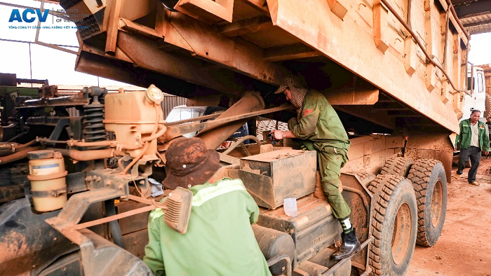 Xe, máy được kiểm tra thường xuyên để đảm bảo công tác thi công