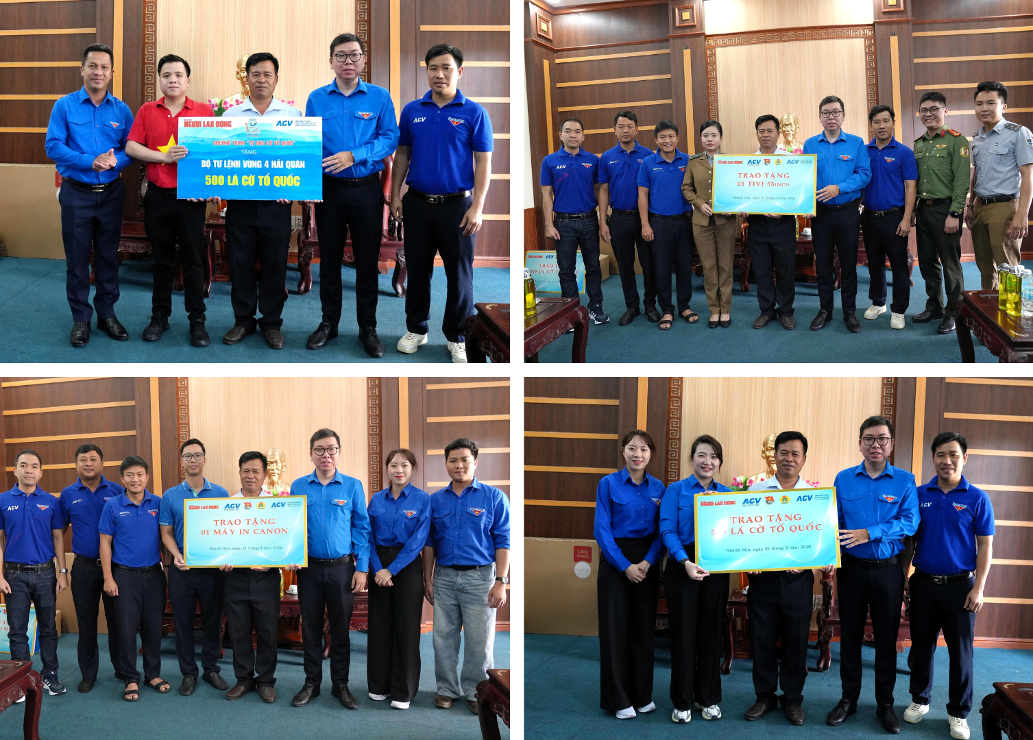 - Trao tặng 1.000 lá cờ Tổ quốc, 01 tivi 55 inch và 01 máy in cho các cán bộ, chiến sĩ Vùng 4 Hải quân ngày đêm bám biển;