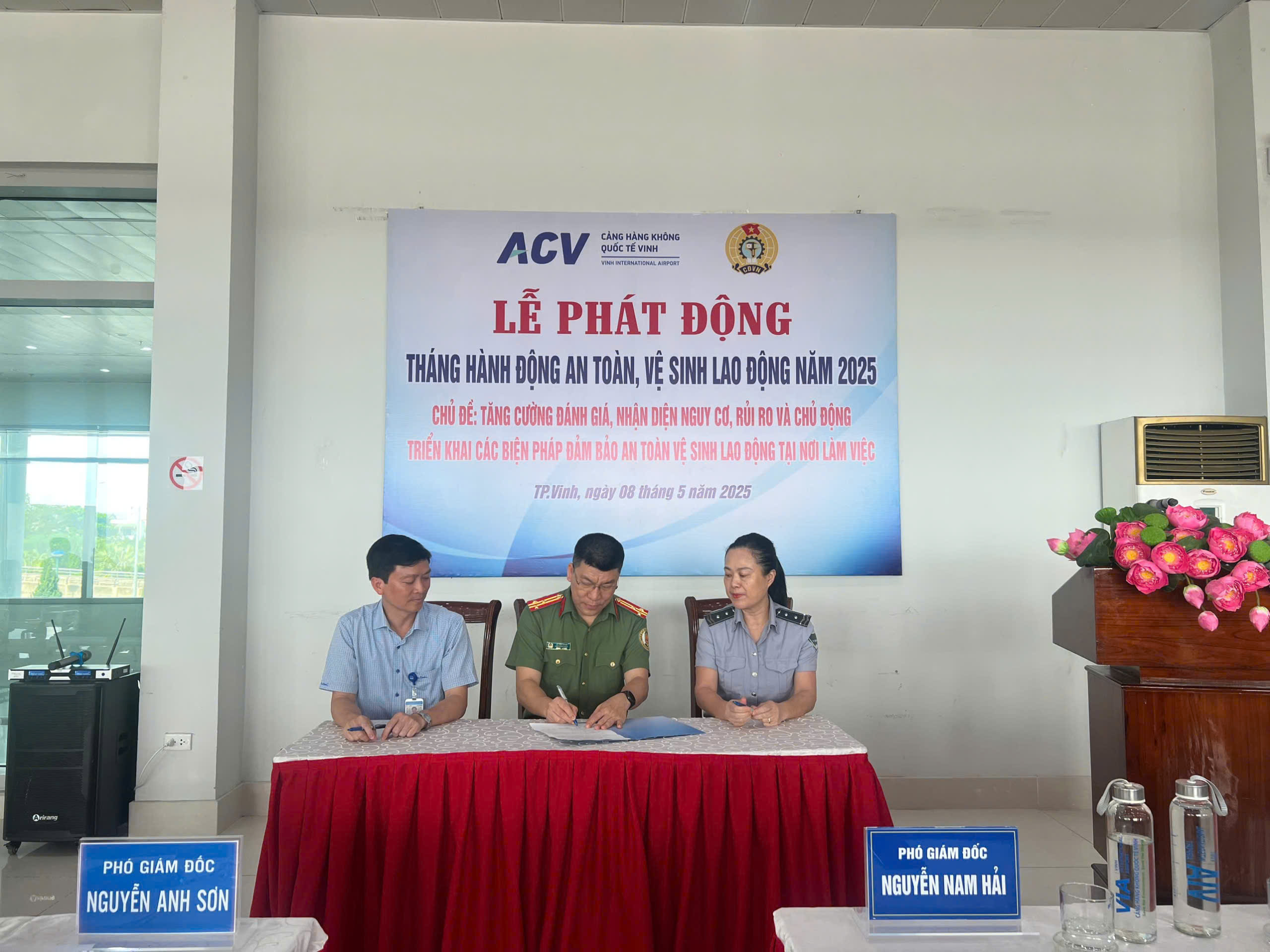 Hưởng ứng Tháng hành động về an toàn, vệ sinh lao động (ATVSLĐ) năm 2025, sáng ngày 08 tháng 5 năm 2025, Cảng Hàng không quốc tế (HKQT) Vinh đã tổ chức Lễ phát động Tháng hành động với chủ đề: “Tăng cường đánh giá, nhận diện nguy cơ, rủi ro và chủ động triển khai các biện pháp bảo đảm an toàn, vệ sinh lao động tại nơi làm việc của Cảng HKQT Vinh.”