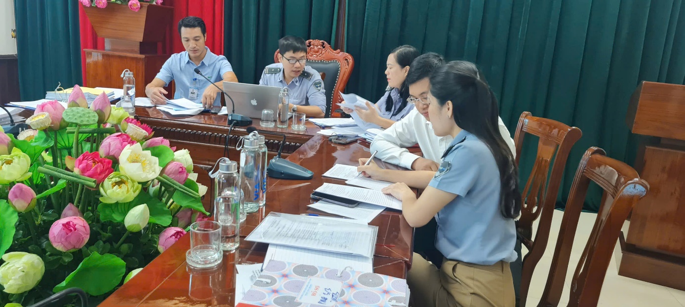 Ảnh: Đoàn kiểm tra thực hiện kiểm tra hồ sơ, sổ sách