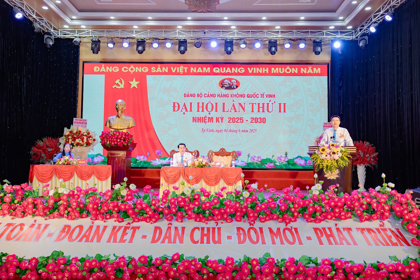 Ngày 04 tháng 6 năm 2025 – Đảng bộ Cảng hàng không quốc tế Vinh tổ chức thành công Đại hội đại biểu lần thứ II, nhiệm kỳ 2025-2030, đánh dấu một cột mốc quan trọng trong quá trình xây dựng và phát triển của đơn vị. Đại hội đã diễn ra trong không khí trang trọng, dân chủ và tràn đầy tinh thần trách nhiệm, khẳng định quyết tâm thực hiện thắng lợi các mục tiêu đề ra.