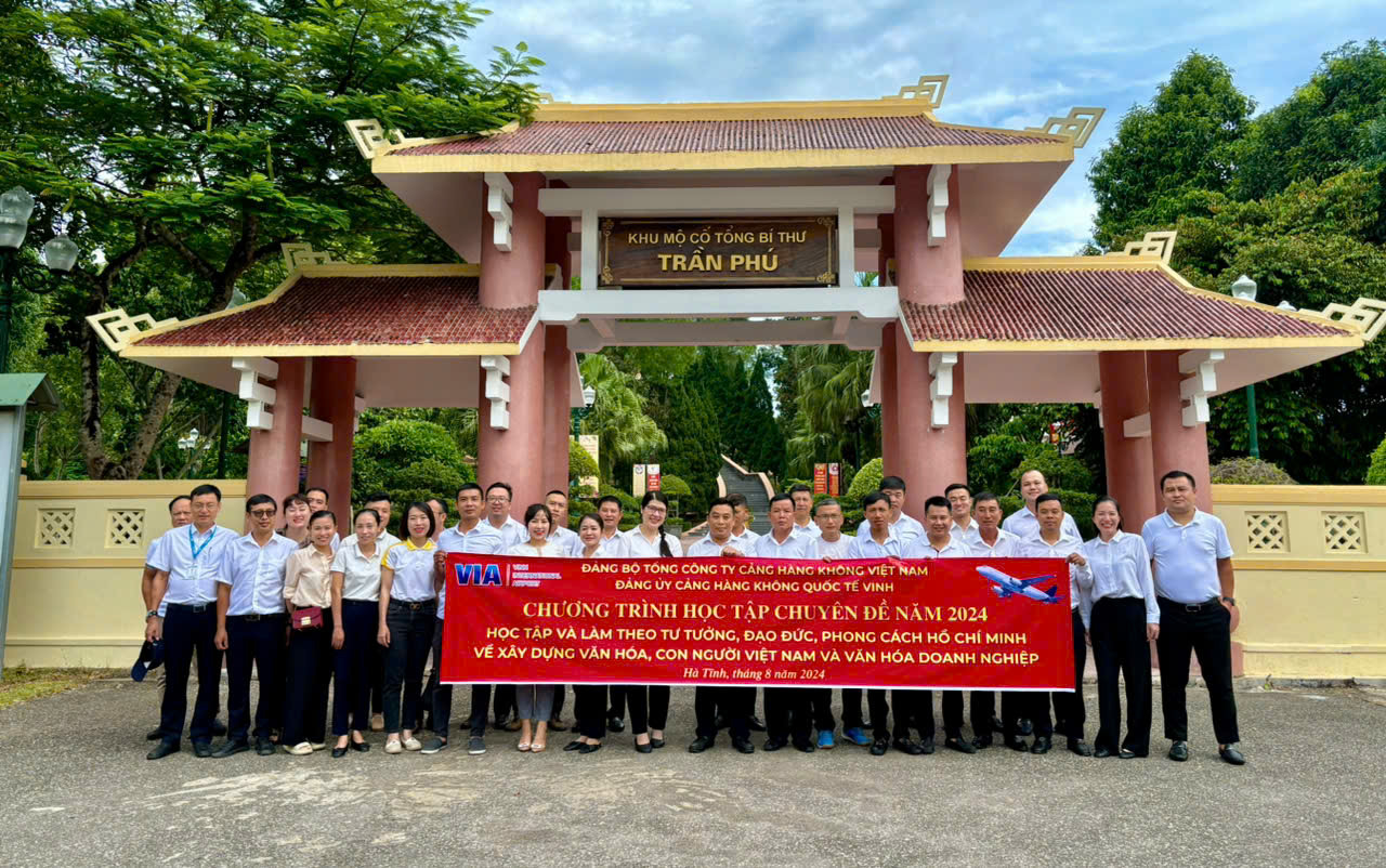 Nằm trong chuỗi hoạt động kỷ niệm 79 năm Ngày Quốc khánh nước Cộng hòa xã hội chủ nghĩa Việt Nam (2/9/1945 - 2/9/2024), sau khi tổ chức học tập chuyên đề năm 2024 với nội dung “Học tập và làm theo tư tưởng, đạo đức, phong cách Hồ Chí Minh về xây dựng văn hóa, con người Việt Nam và văn hóa doanh nghiệp” tại đơn vị; chương trình học tập, sinh hoạt chính trị của Đảng bộ Cảng HKQT Vinh đã tiếp tục đưa các đồng chí đảng viên đến với những địa điểm mang tính lịch sử nhằm tìm hiểu, tri ân các anh hùng, liệt sỹ tại một số di tích lịch sử “địa chỉ đỏ” thuộc huyện Đức Thọ, tỉnh Hà Tĩnh, bao gồm Khu di tích mộ, nhà tưởng niệm cố Tổng Bí thư Trần Phú và Khu di tích mộ cụ Phan Đình Phùng.